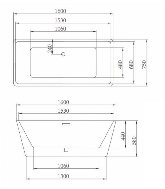 Bañera Exenta CASPIO de AQUORE 75x160 Blanca