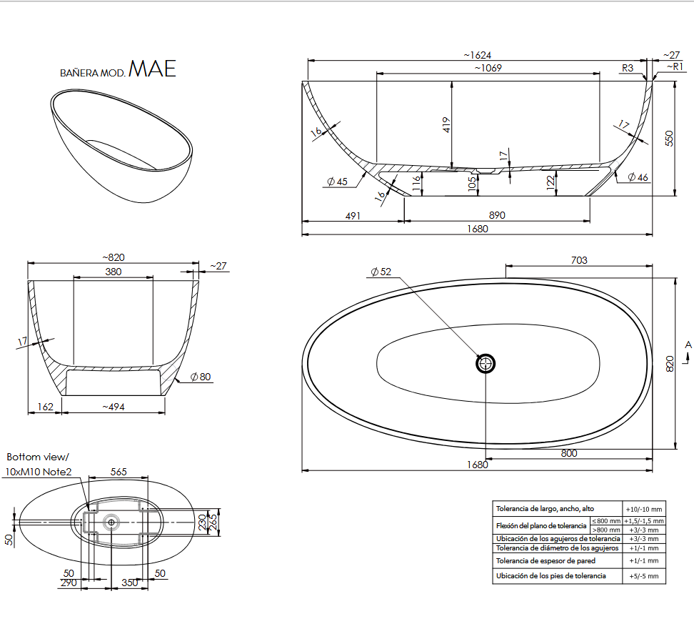Gracias a su composición mineral reforzada con resina de poliéster y cargas de última generación, la bañera MAE conserva una temperatura óptima del agua durante más tiempo, brindando una experiencia de baño cálida y relajante.