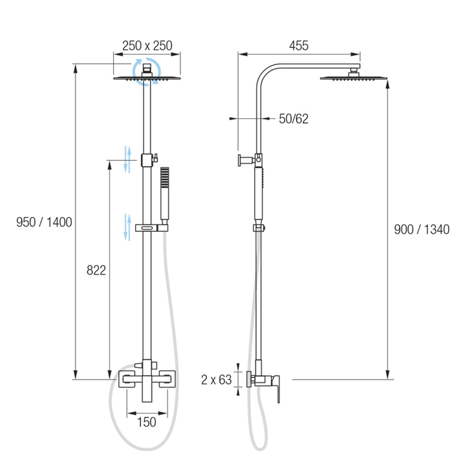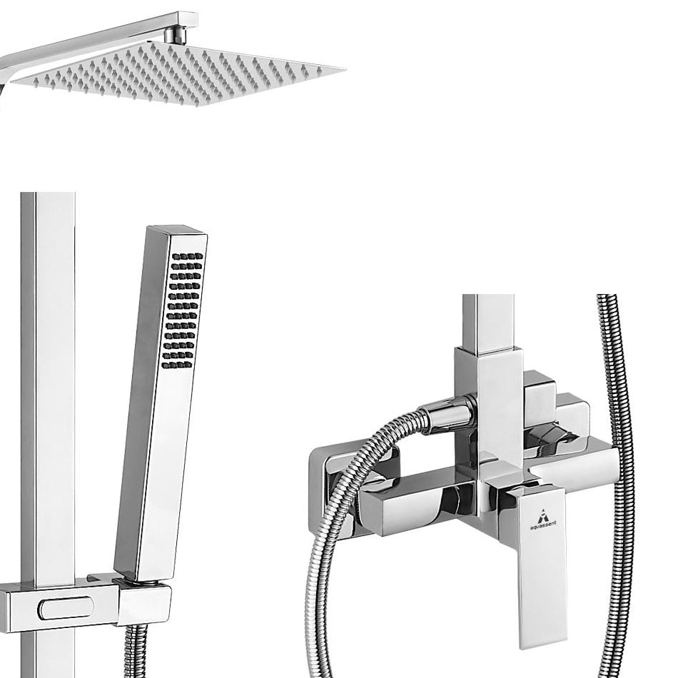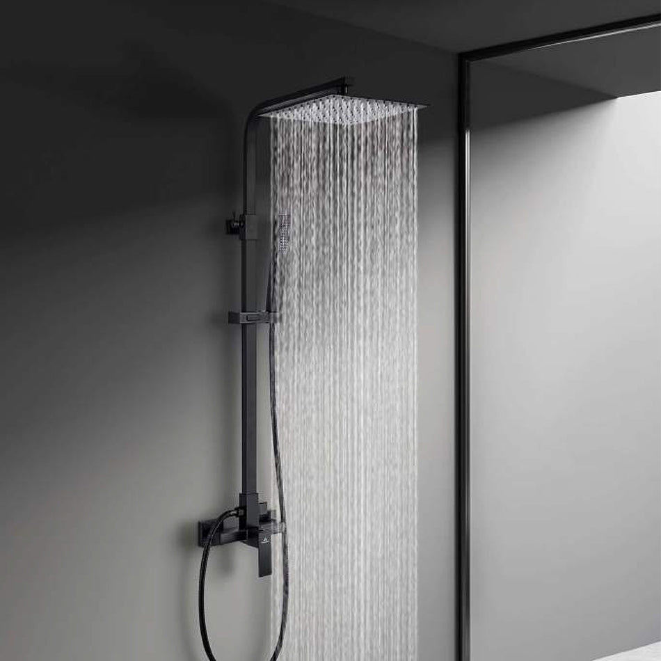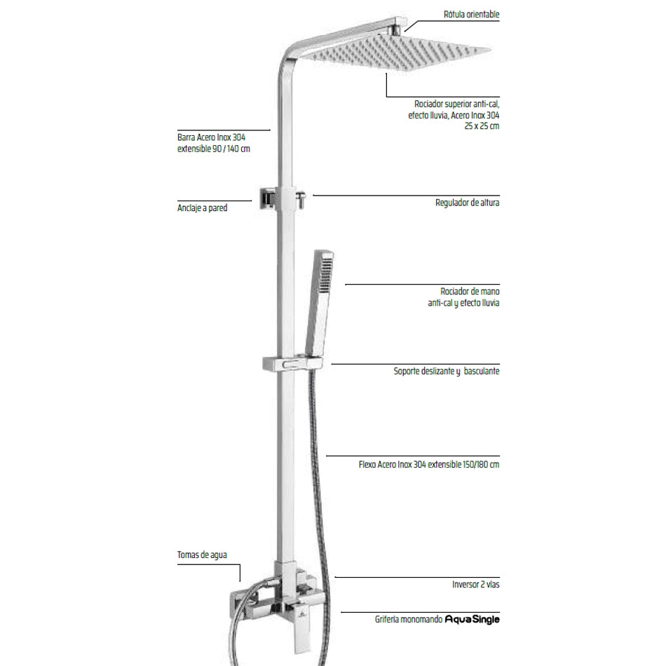 Conjunto Ducha Monomando LUXOR Aquassent | Cromo Brillante y Negro | Rociador Cuadrado | 95-140cm