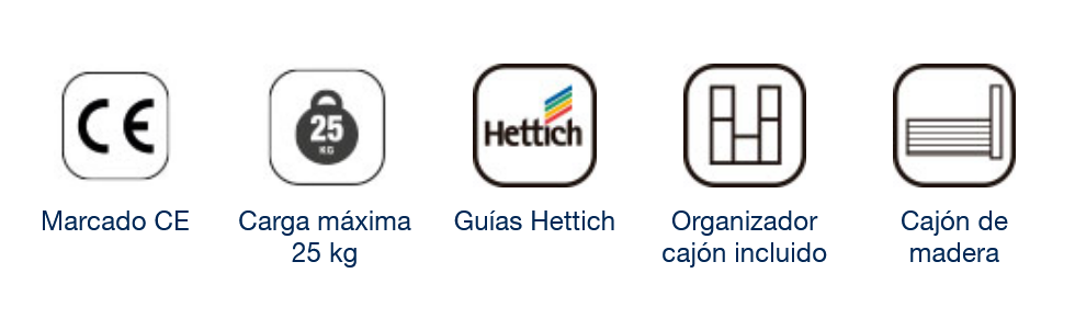 • Amplio espacio de almacenaje con organizador de cajón y cajón XL inferior