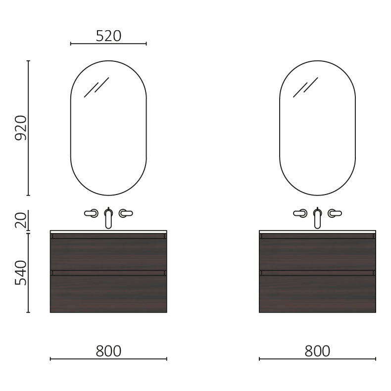 • Mueble de baño MARA 800 con 2 cajones con freno, acabado Eucalipto Oceanía (797 x 540 x 452 mm). x1