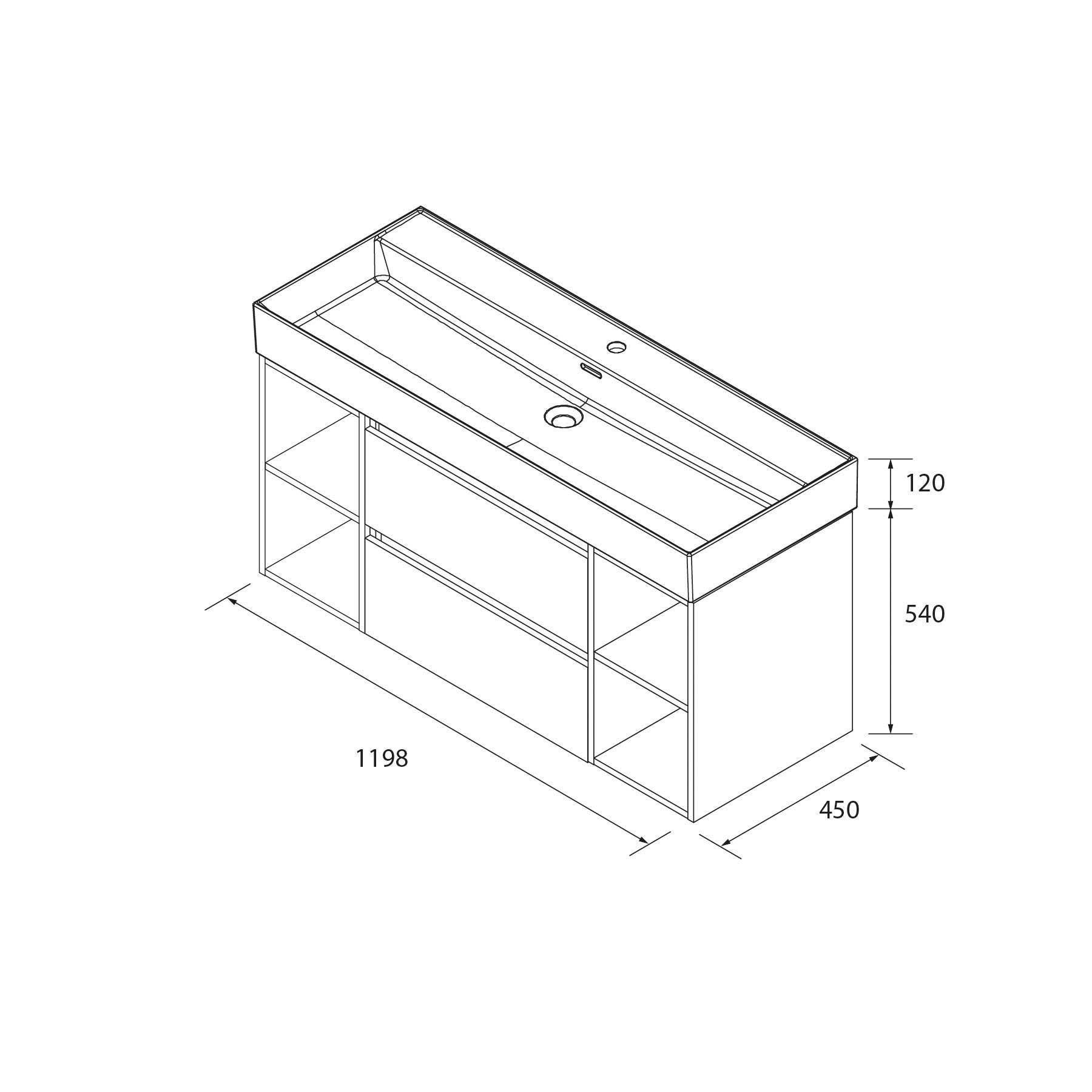 Conjunto Mueble Bequia 2 Cajones y 2 Coquetas + Lavabo Veneto, 120cm