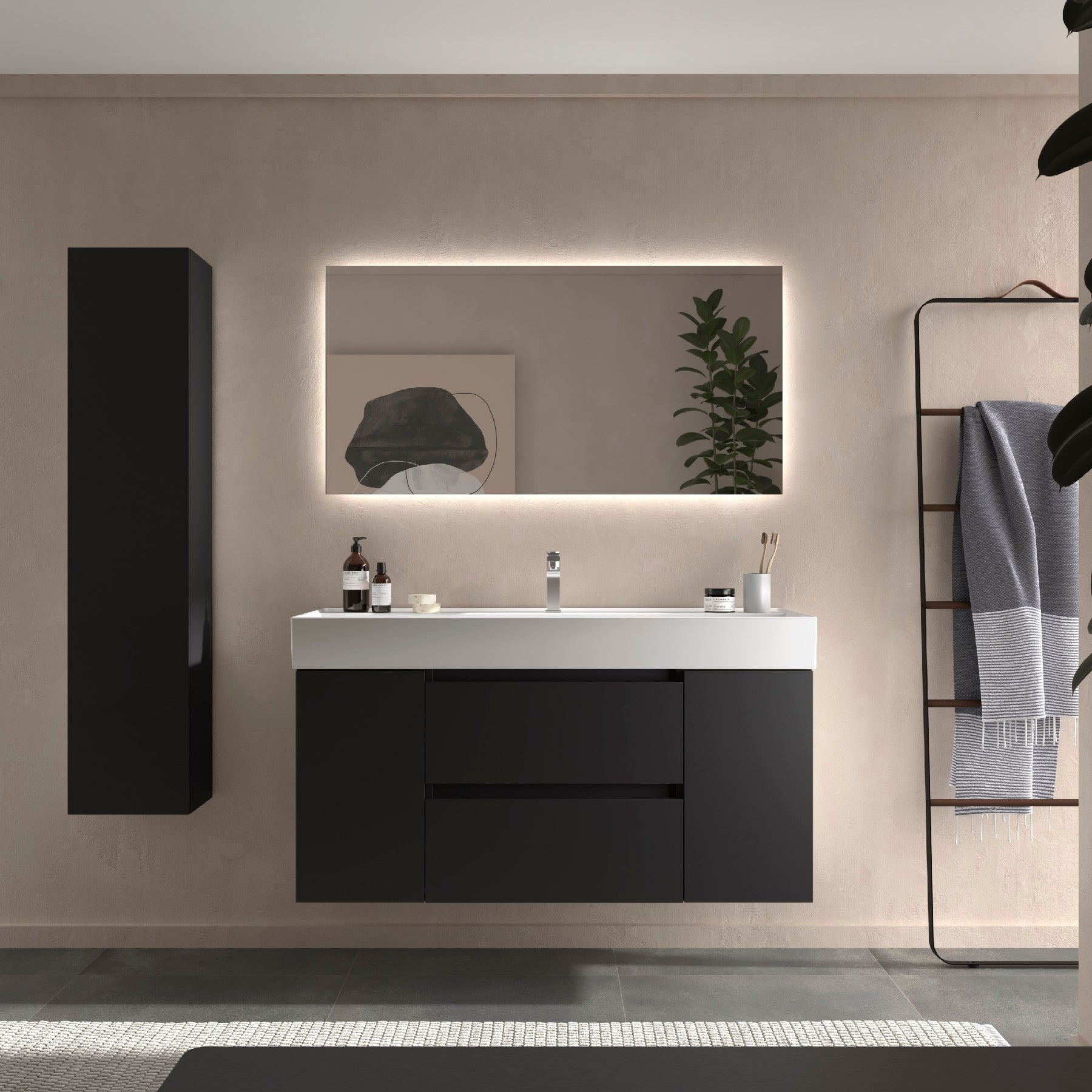 Su estética limpia, sin tiradores ni adornos superfluos, convierte al mueble de baño Bequia en una pieza atemporal que se adapta perfectamente a cualquier estilo de decoración.
