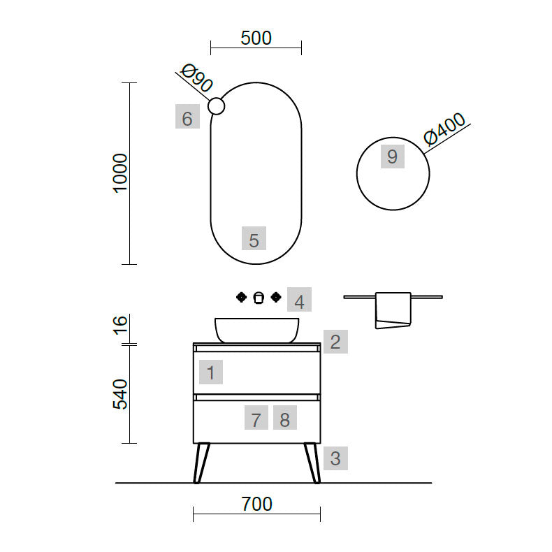• Espejo OVALO horizontal vertical 500 x 1000 mm