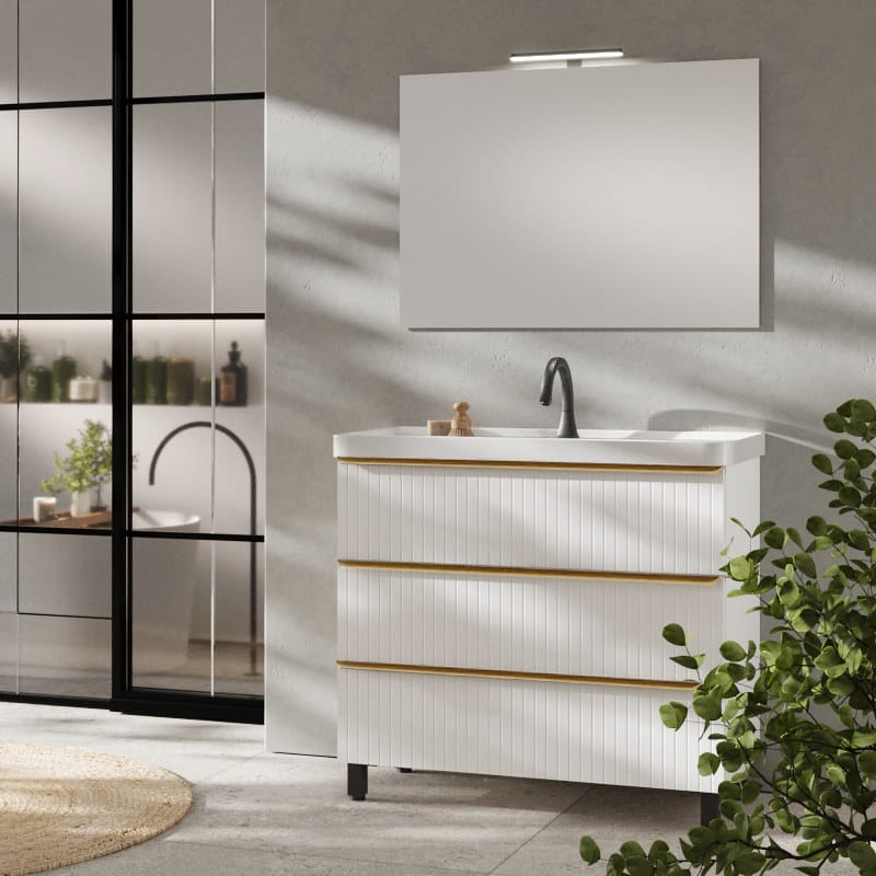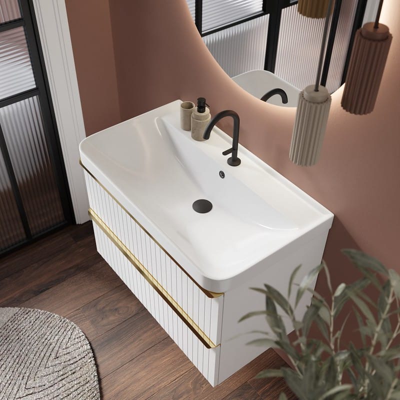 Conjunto Baño NOVEL, 3 Cajones Blanco + Lavabo COSMO | Tiradores Oro
