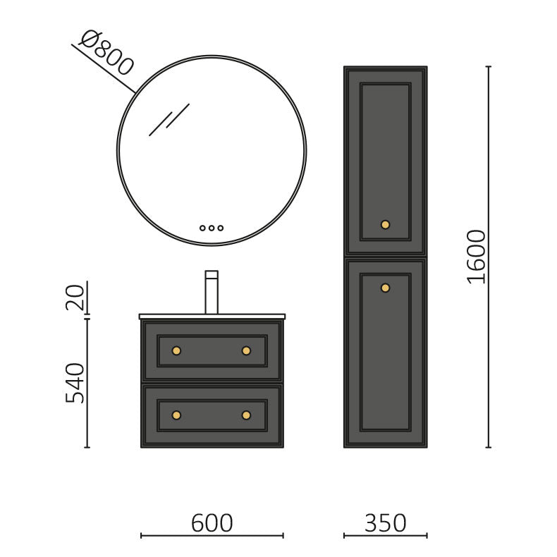 Conjunto RENOIR 60 cm, Antracita de Salgar