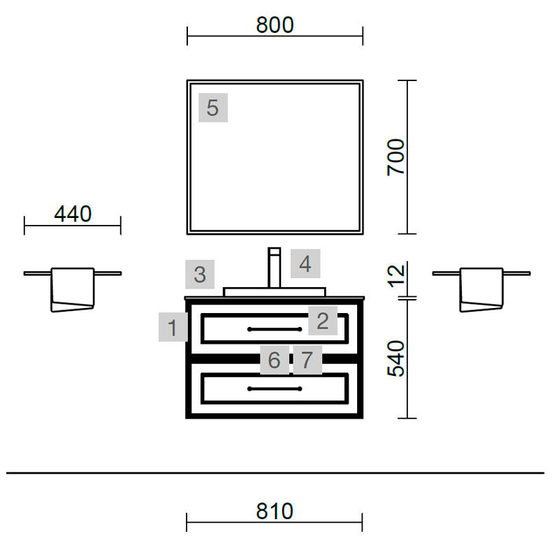 - Espejo MITO LINE 800 horizontal con luz led (7 W - 4000ºK) IP44 800 x 700 mm (Opcional)