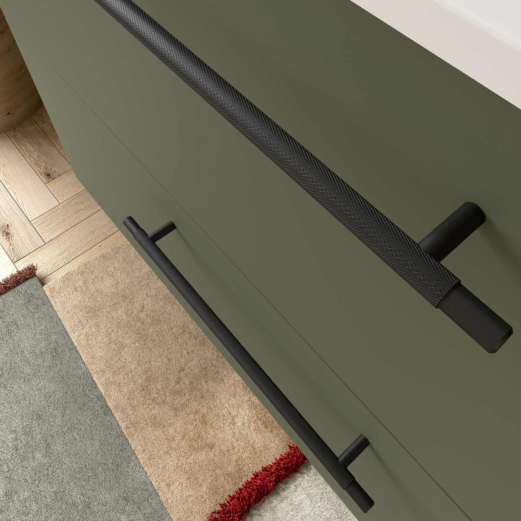 Su tirador Quilt Matt Black le aporta una estética contemporánea y elegante, aunque también puedes optar por el tirador en cromo si prefieres un toque más clásico.