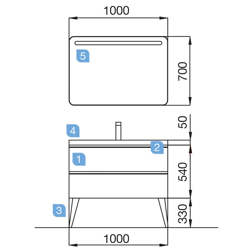 • Lavabo TOSCANA 1005 CARGA MINERAL BLANCA 1005 x 50 x 460 mm