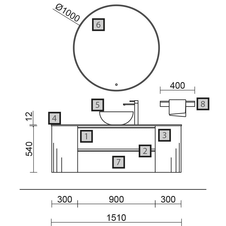 • Espejo GLOBE 1000 circular con luz led y sensor (20 W- 5700ºK) IP44 DORADO Ø 1000 mm (opcional).