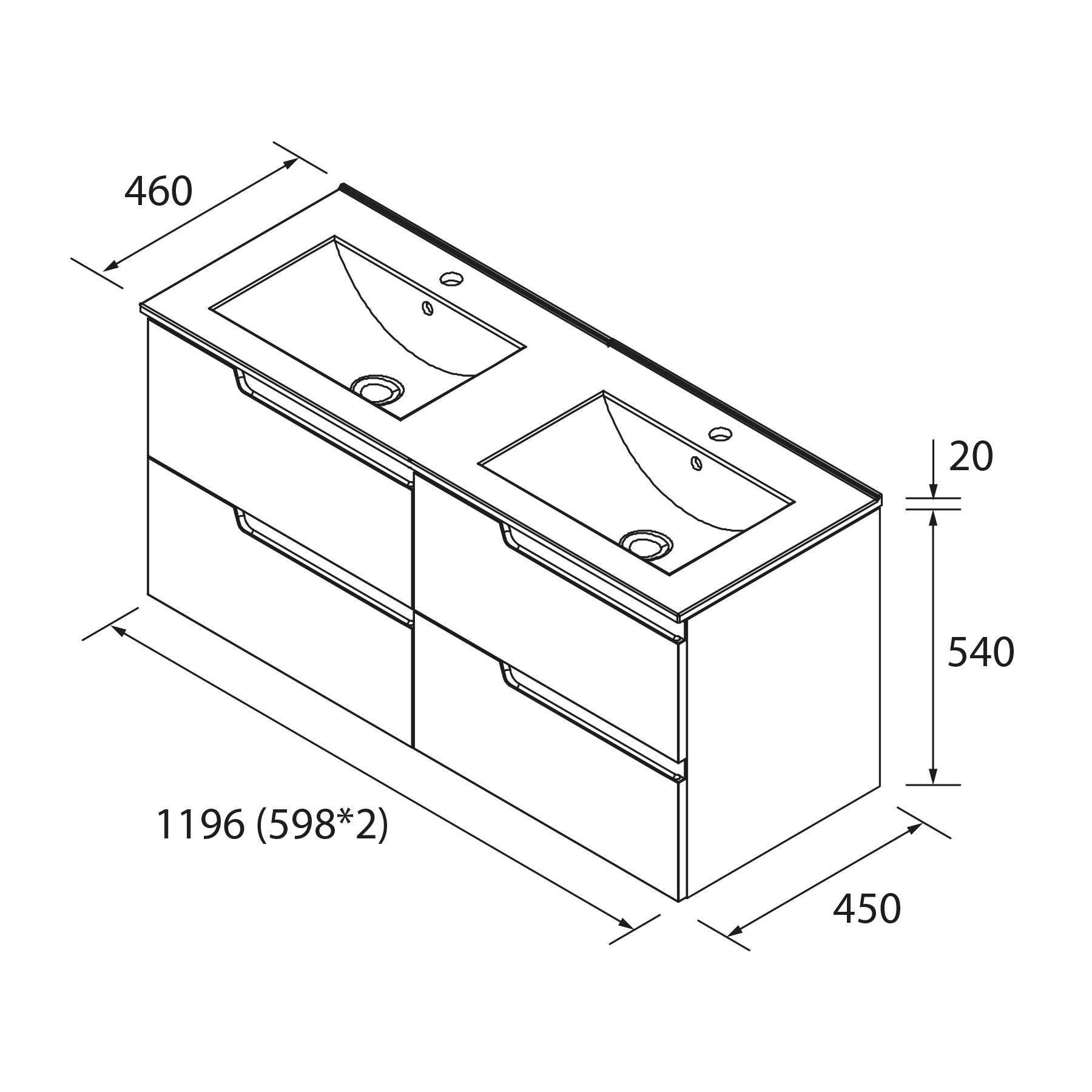 Muebles de 60, 80 y 100 cm con 2 cajones, y de 120 cm con 4 cajones, ofreciendo gran capacidad de almacenamiento.