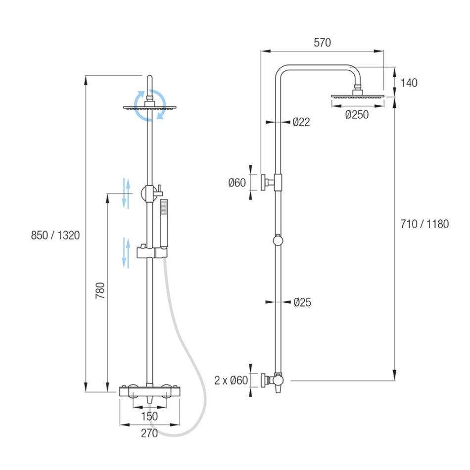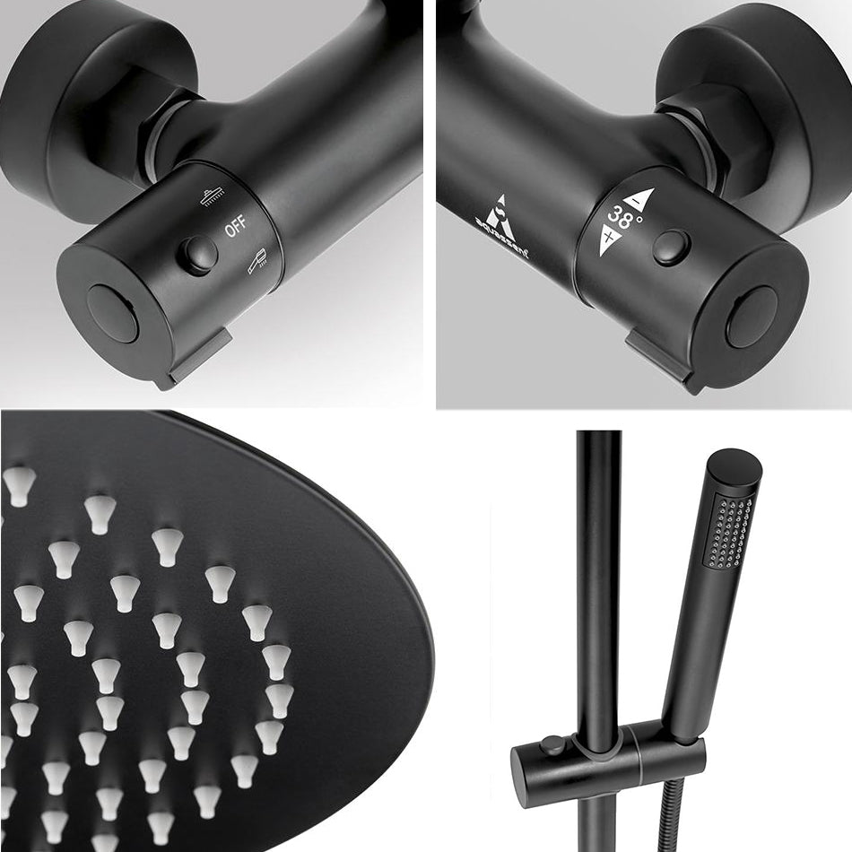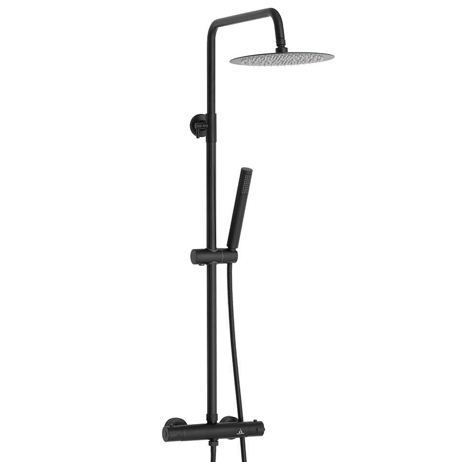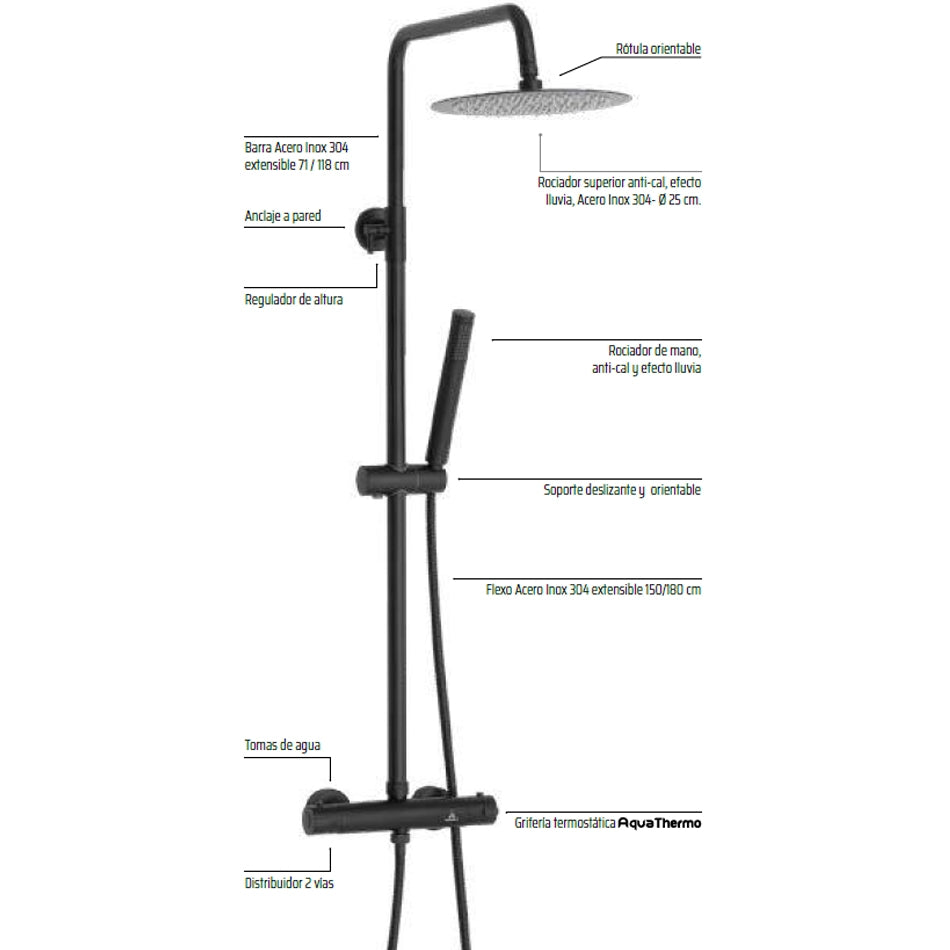 Ducha Termostática NERIS de Aquassent | Rociador Redondo 25 cm | Barra Extensible 71-118 cm | Acabado Negro Electrochapado