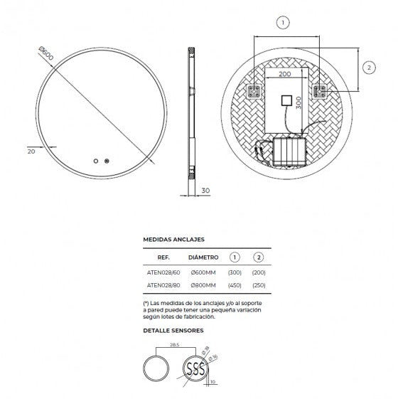 Disponible en dos tamaños —Ø60 cm y Ø80 cm— y con tres tonos de luz (cálida 3.000K, neutra 4.000K y fría 6.500K), el espejo LED Atenas es la elección perfecta para quienes buscan funcionalidad, estilo y confort en su baño.