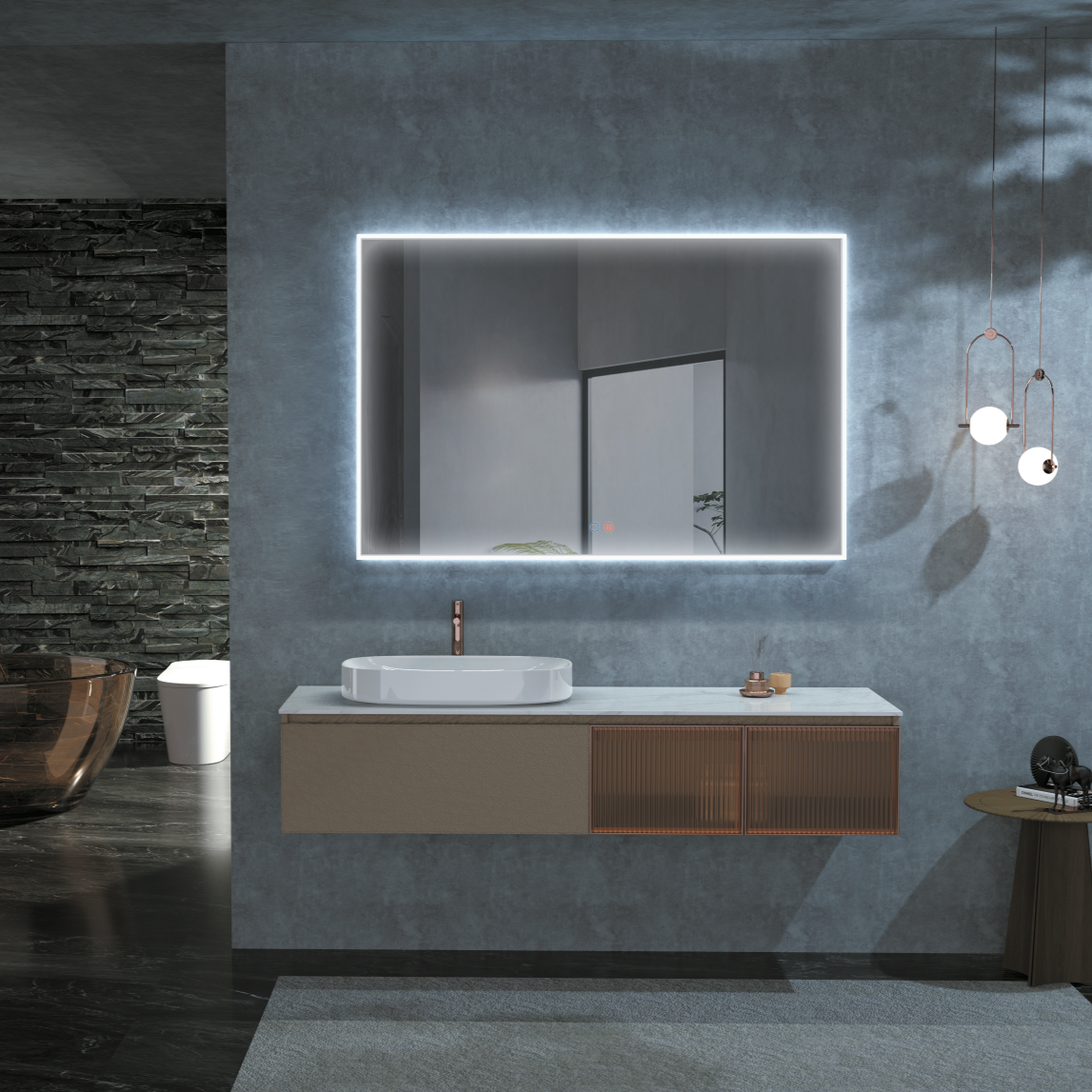 Fabricado con cristal de 5 mm de grosor, este espejo garantiza una alta resistencia a golpes y durabilidad, además de contar con vidrio anti-explosión y plateado sin cobre, más ecológico y duradero. Su sistema de iluminación LED de alta calidad (120 diodos por metro lineal) ofrece una luz uniforme y sin deslumbramientos, gracias a su revestimiento de silicona difusora.