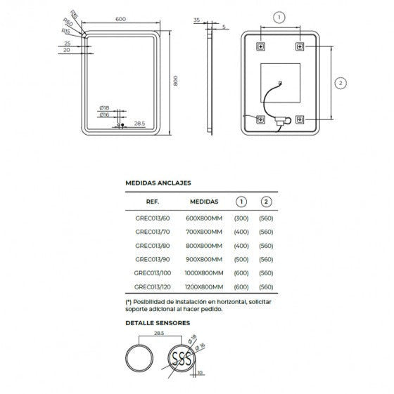 Disponible en varias medidas —80x60, 80x70, 80x80, 80x90, 80x100 y 80x120 cm— el espejo LED Grecia es la combinación perfecta de tecnología, elegancia y confort, ideal para baños modernos y luminosos.