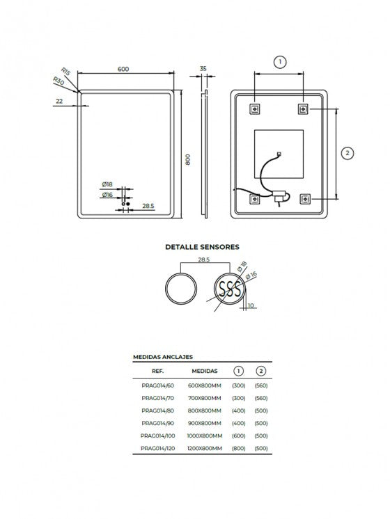 Además, incorpora doble sensor táctil: uno para el encendido y apagado de la luz LED, y otro para activar el sistema antivaho, evitando que el espejo se empañe tras la ducha.