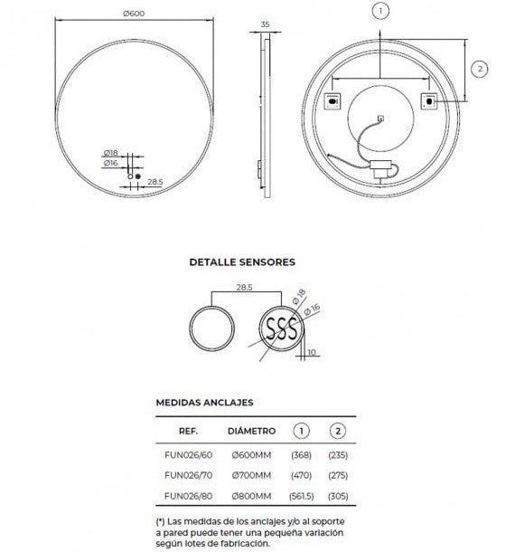 Disponible en tres tamaños (Ø60, Ø70 y Ø80 cm) y tres tonalidades de luz —cálida 3.000K, neutra 4.000K y fría 6.500K—, el espejo Fun te permite personalizar tu experiencia lumínica según el ambiente que desees crear.