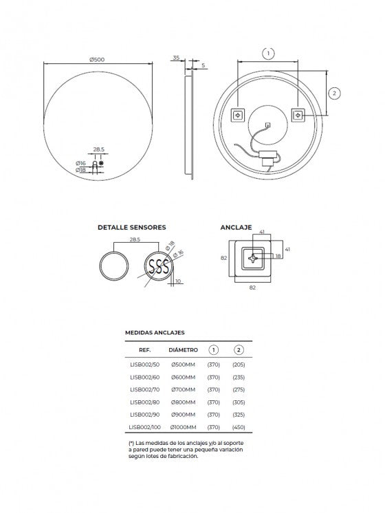 Medidas disponibles: Ø50, Ø60, Ø70, Ø80, Ø90 y Ø100 cm.