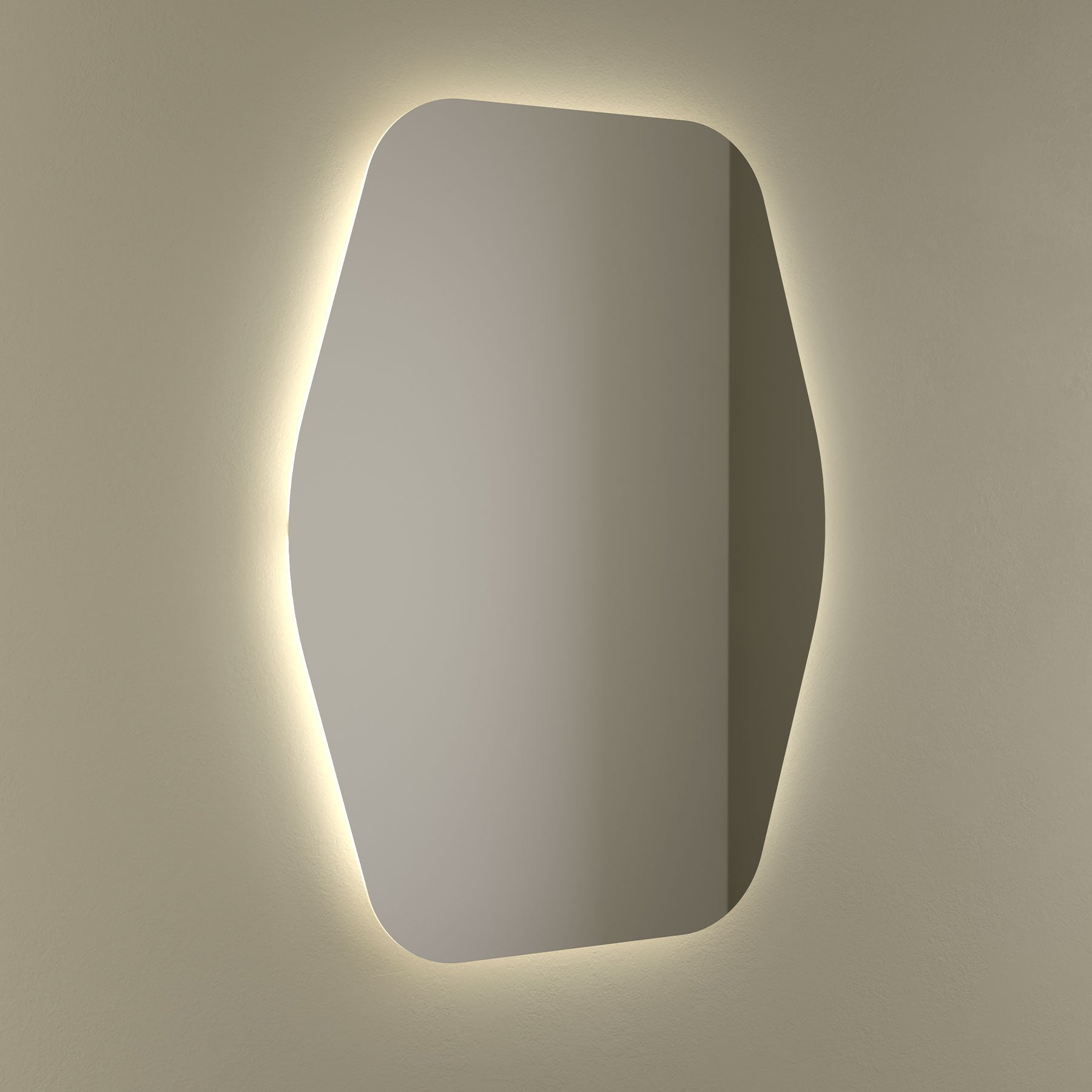Fabricado con luna pulida de 5 mm de grosor, el espejo Organic garantiza una gran resistencia y durabilidad. Además, incorpora iluminación LED integrada, que ofrece una luz suave, homogénea y funcional, ideal para tus rutinas diarias de cuidado personal.