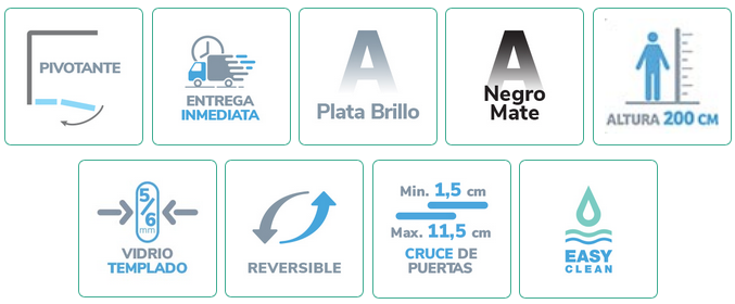 La mampara PIVOT PV503 es reversible, lo que permite adaptarla fácilmente a diferentes configuraciones de baño. Además, incorpora un cierre magnético que proporciona un sellado firme y silencioso, junto a un tirador tipo pomo que combina diseño y practicidad.