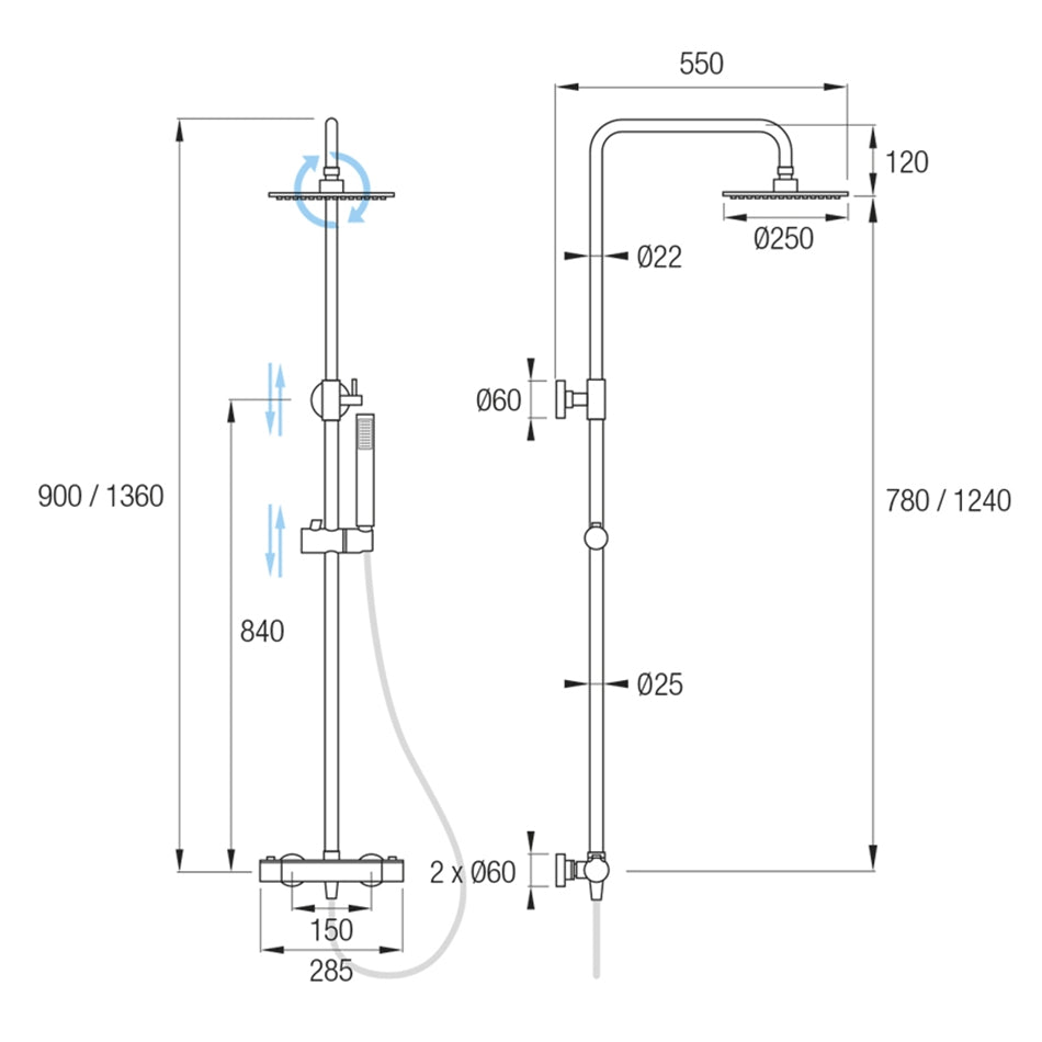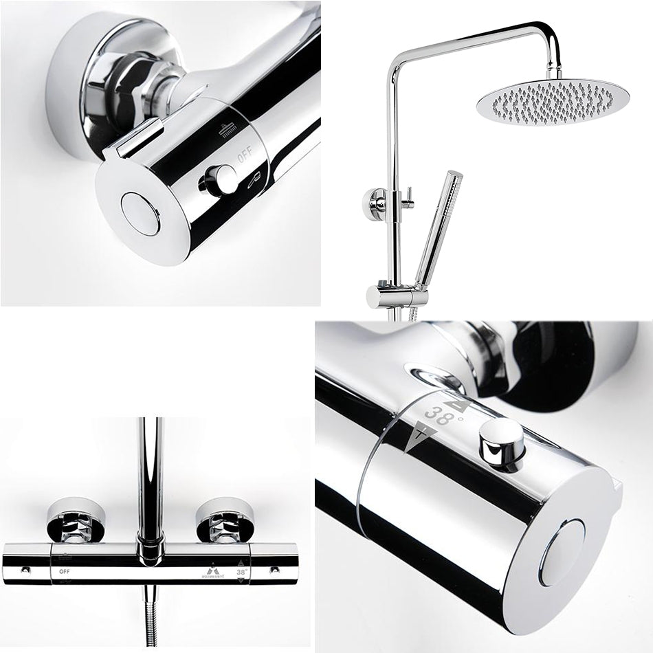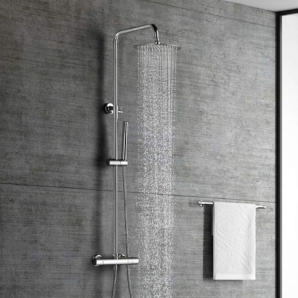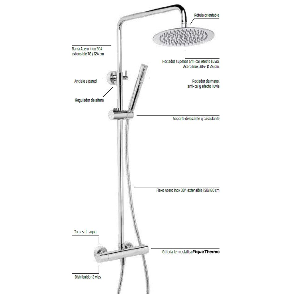 Grifería Termostática IRIS Aquassent | Ducha Barra Extensible Acero Inox 78-124 cm | Rociador Efecto Lluvia Antical 25 cm