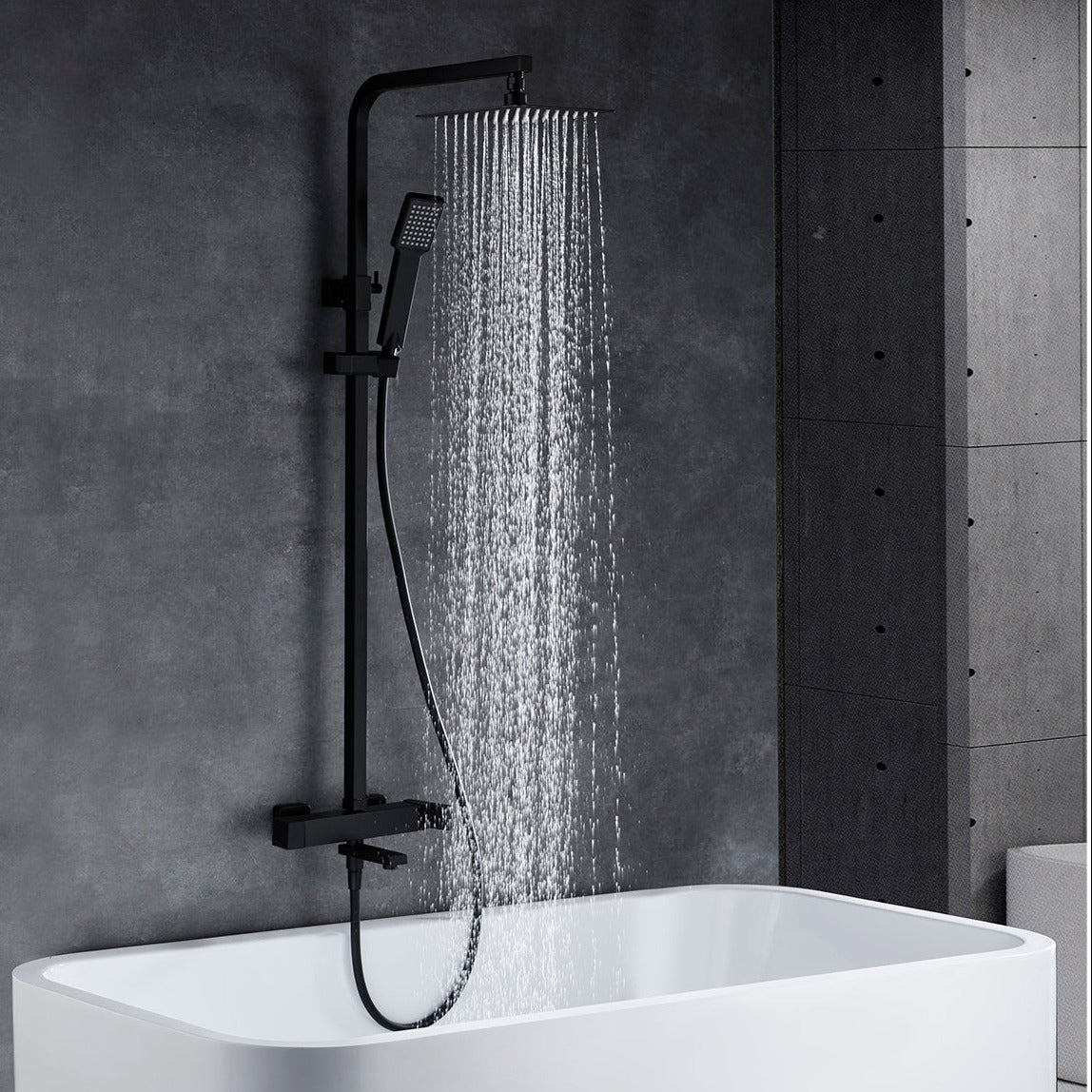 Conjunto De Bañera Negro Mate Imex FIJI | Con Caño Abatible | Barra Telescópica | Rociador Antical 20x20 | IMEX
