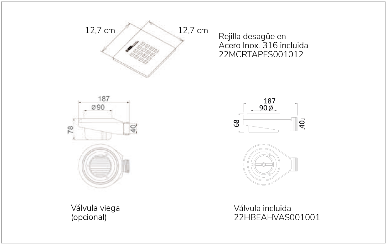 Además, este plato de ducha cuenta con rejilla de acero inoxidable cuadrada, válvula de gran caudal y certificación antideslizante Clase 2 UNE-En12633, lo que lo convierte en una opción segura y cómoda para el uso diario.