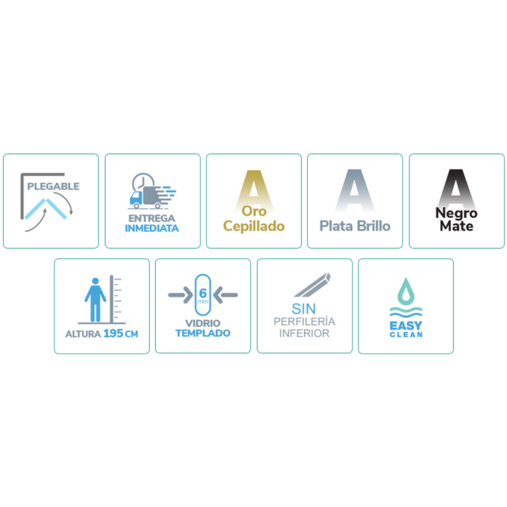 Mampara de 2 Hojas Plegables NARDI NA300 Kassandra | Sin Perfiles | Easy Clean | 195 Cm