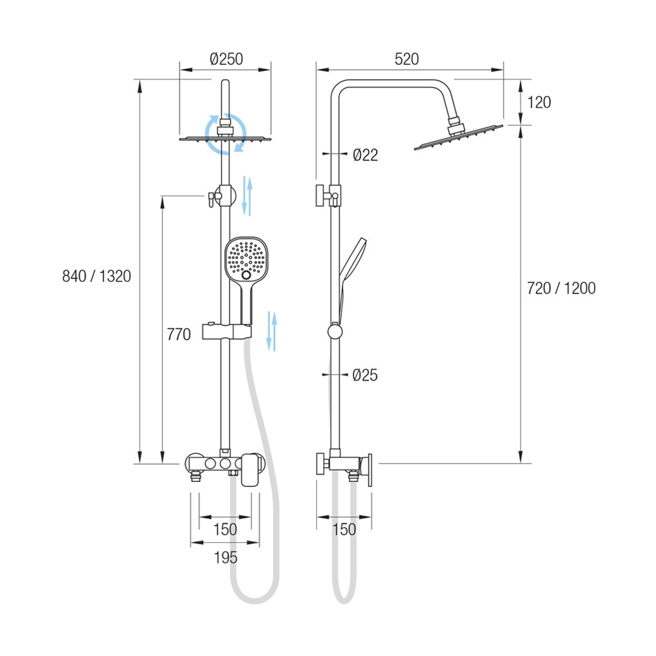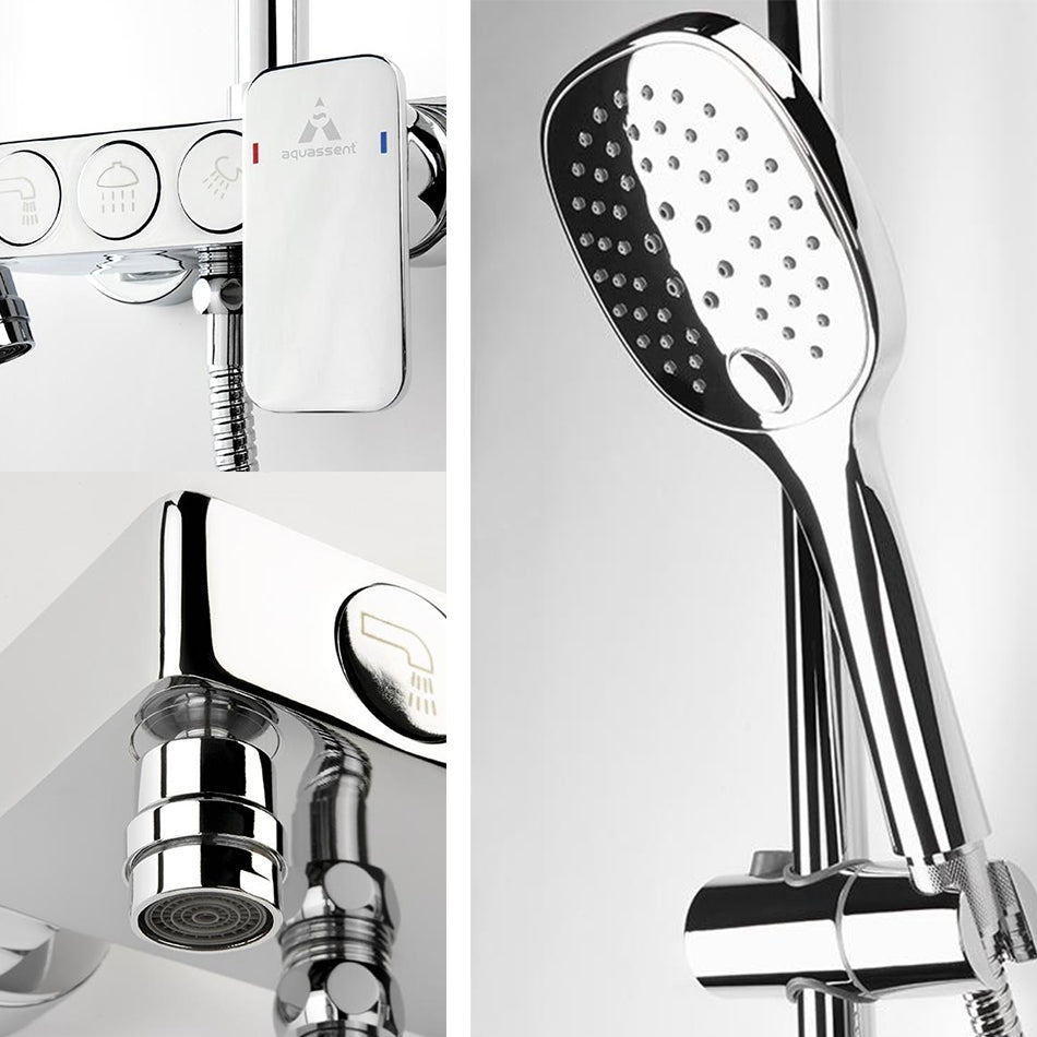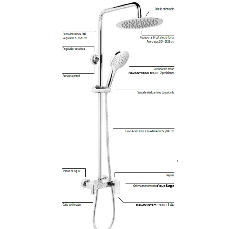 Kit Ducha DIVIRA Aquassent | System Touch 3 Vías | Rociador 25 cm + Aireador | Barra Extensible 72-120 cm