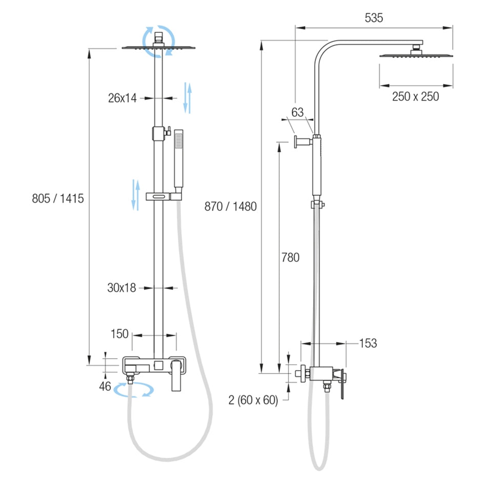• Rociador cuadrado 25x25 cm + ducha de mano
