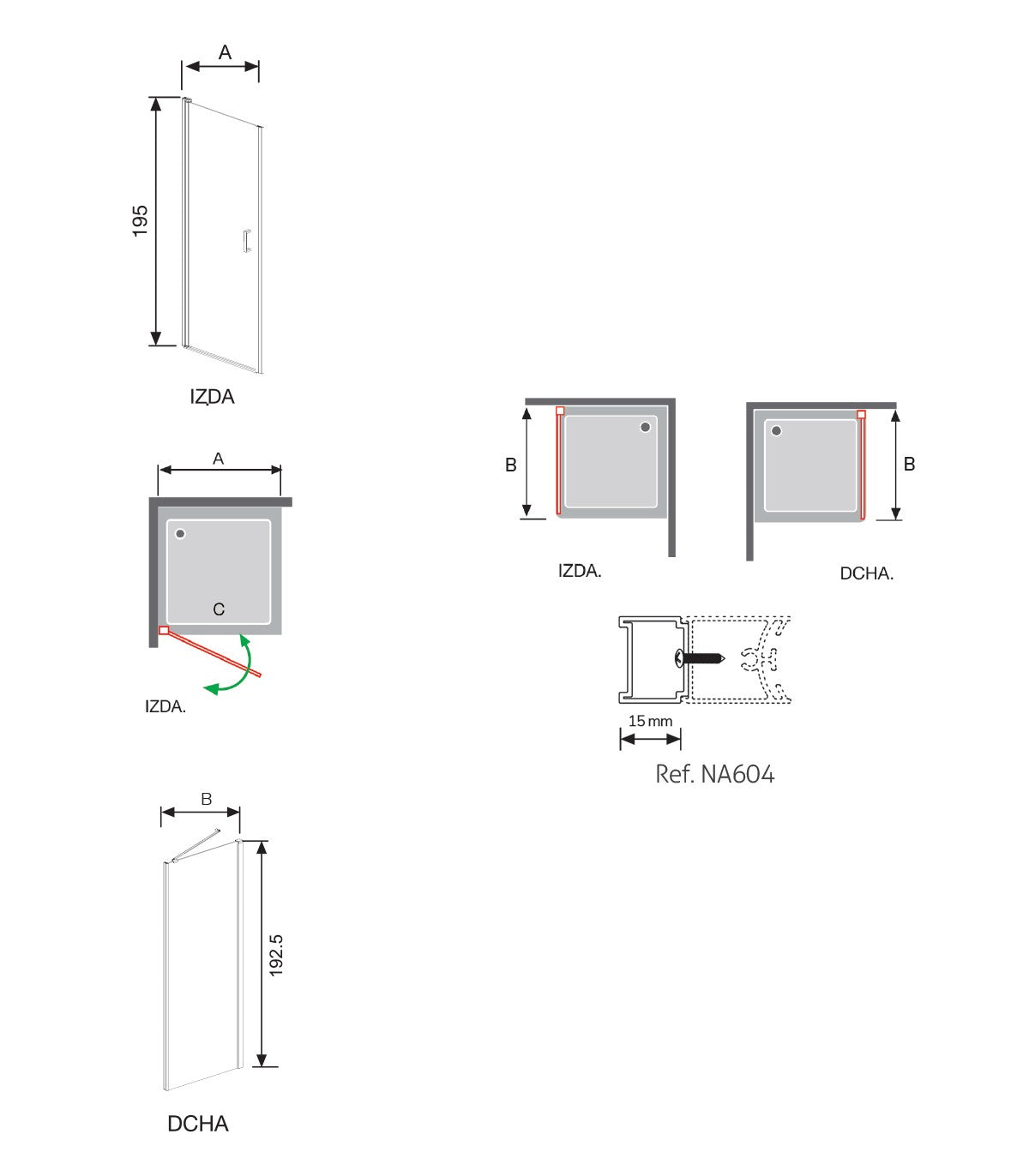 Con una estructura reversible, la mampara Nardi NA507 puede instalarse con la apertura en el lado que prefieras, adaptándose completamente a tu espacio. Disponible en distintas medidas, es perfecta para platos de ducha reducidos o esquinas con obstáculos.