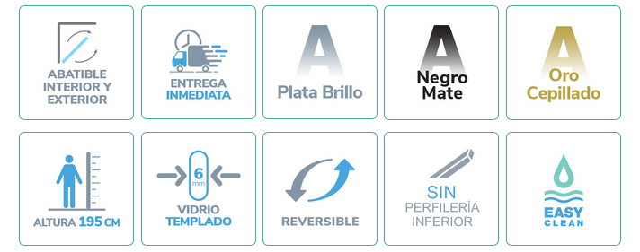 Fabricada con vidrio templado transparente de 6 mm y perfilería de aluminio anodizado en plata alto brillo o negro mate, aporta luminosidad, amplitud visual y un toque contemporáneo al baño. Su tratamiento antical Easy Clean mantiene los cristales impecables con un mínimo esfuerzo, prolongando su brillo y limpieza.