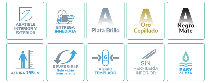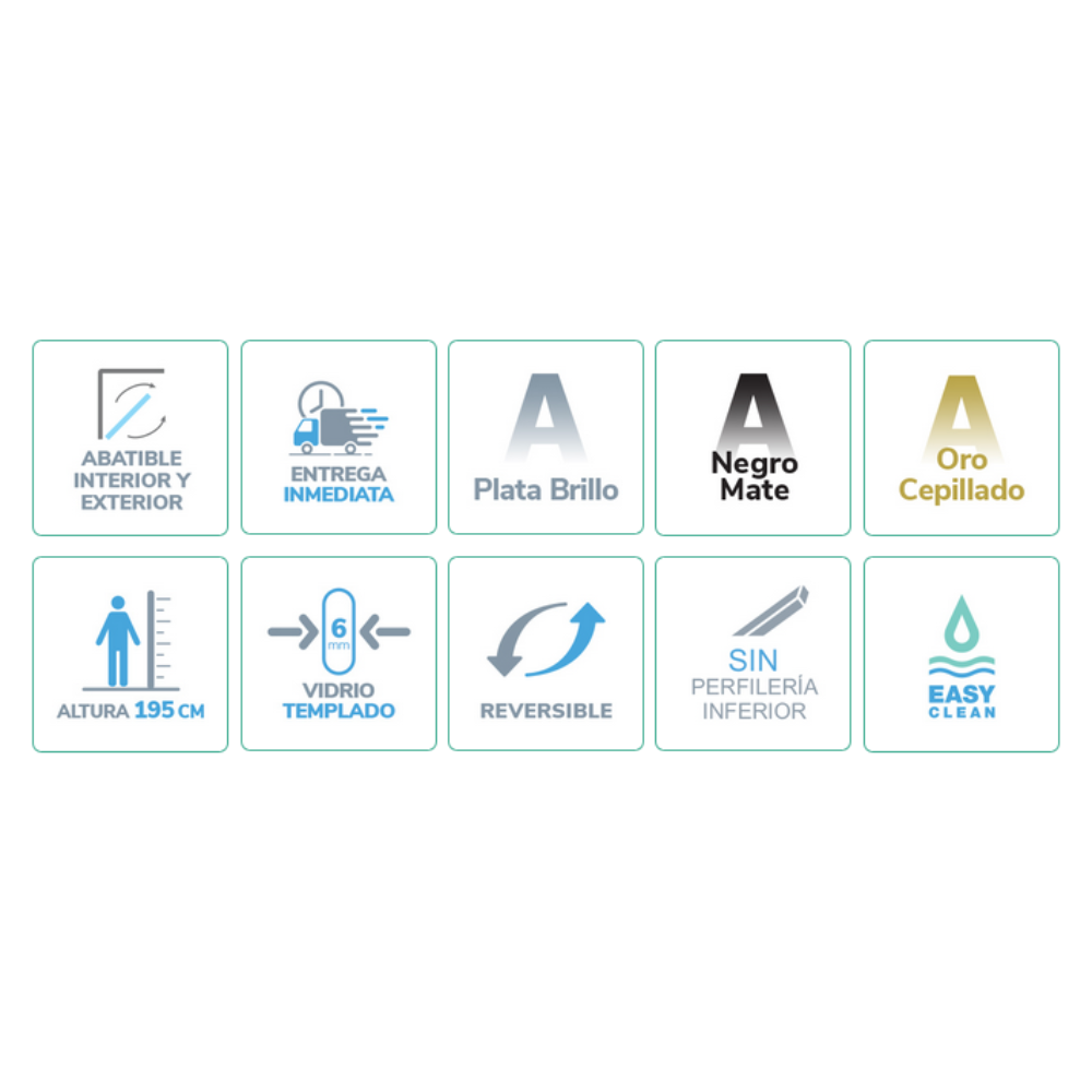 La ausencia de perfil inferior mejora la accesibilidad, especialmente útil para personas mayores o con movilidad reducida, mientras que su perfil de aluminio anodizado en plata alto brillo o negro mate aporta un toque sofisticado y contemporáneo.