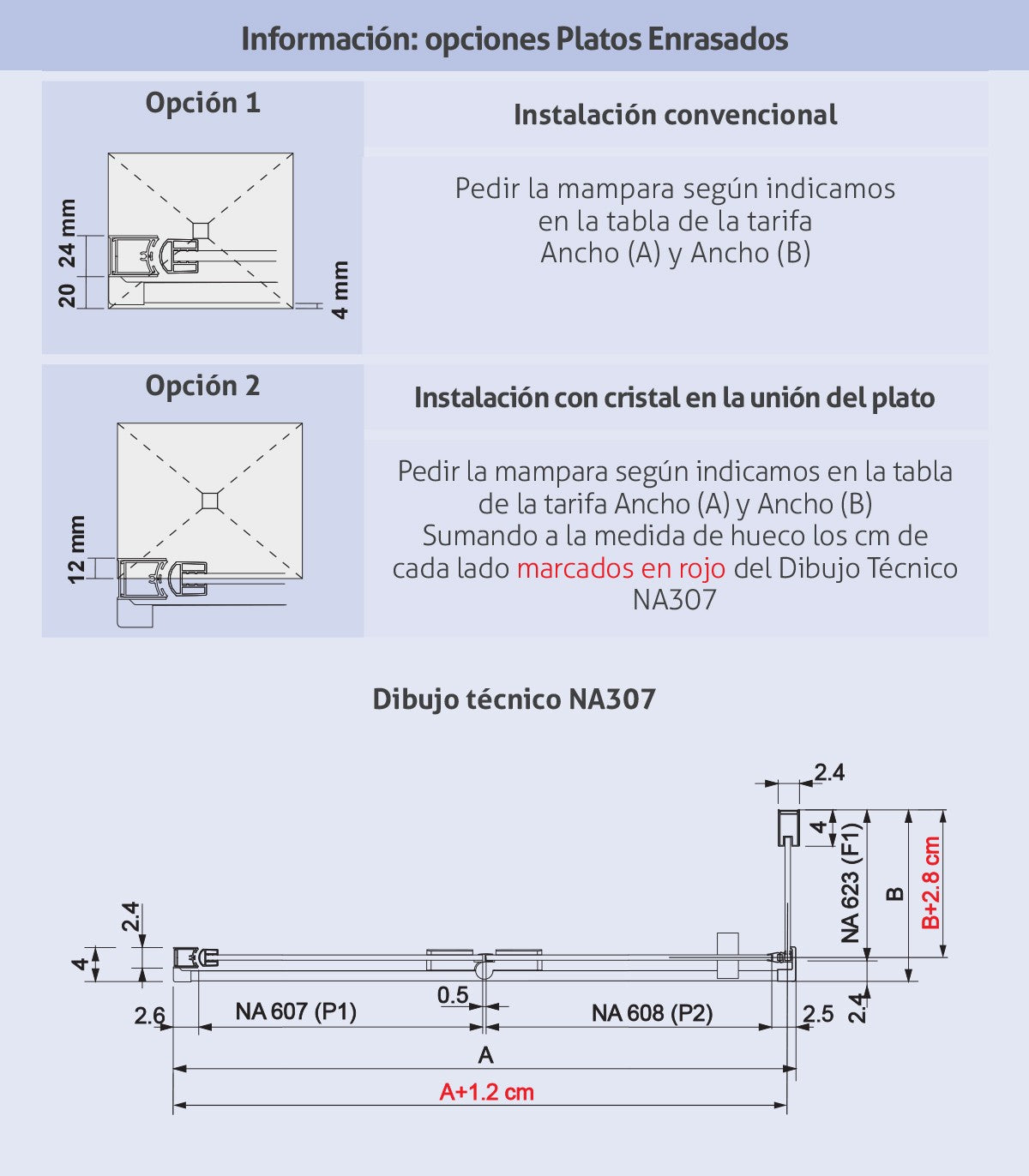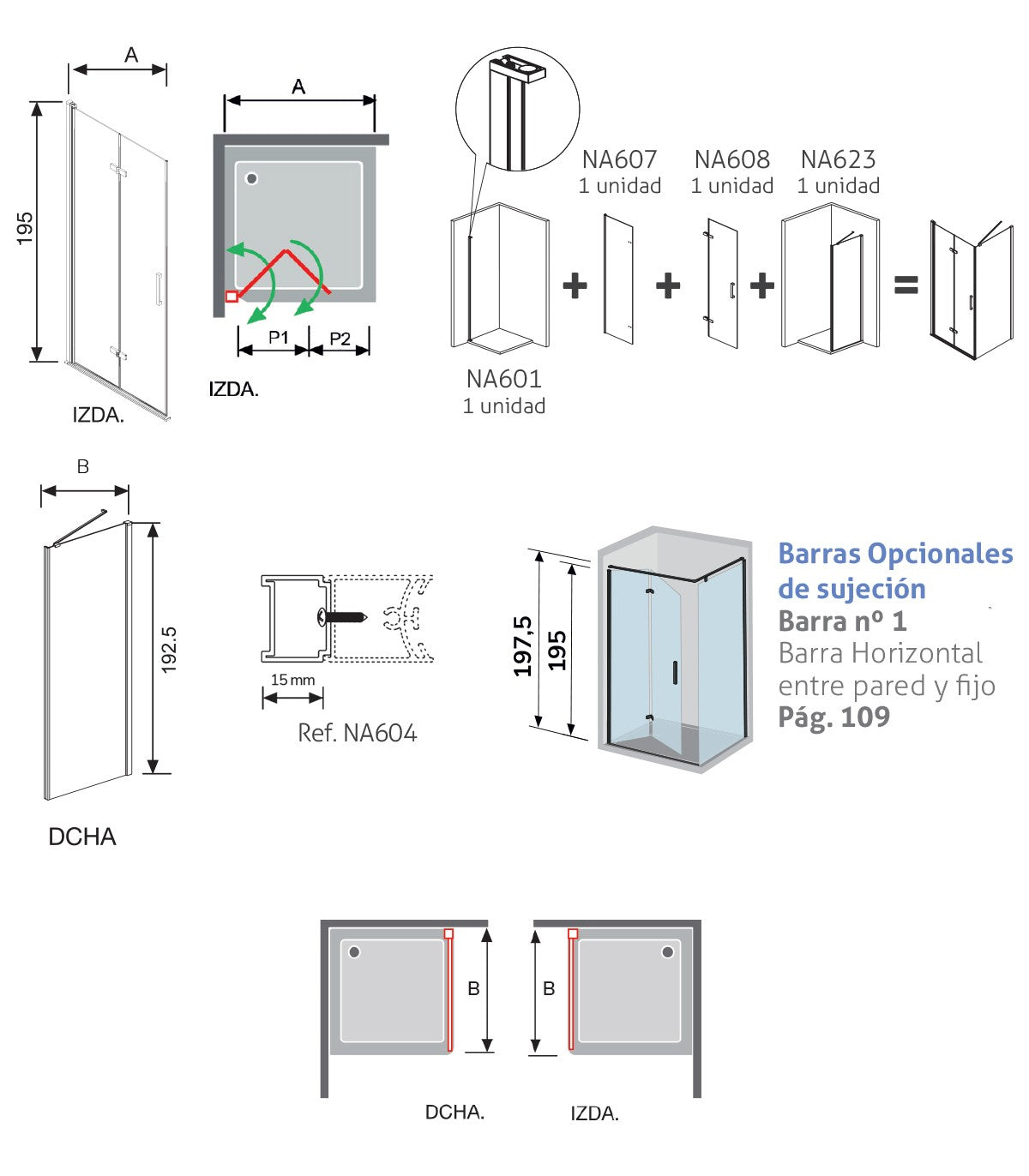 - Anchos disponibles desde 62,5 cm hasta 94 cm, con opción de lateral fijo en varias medidas.