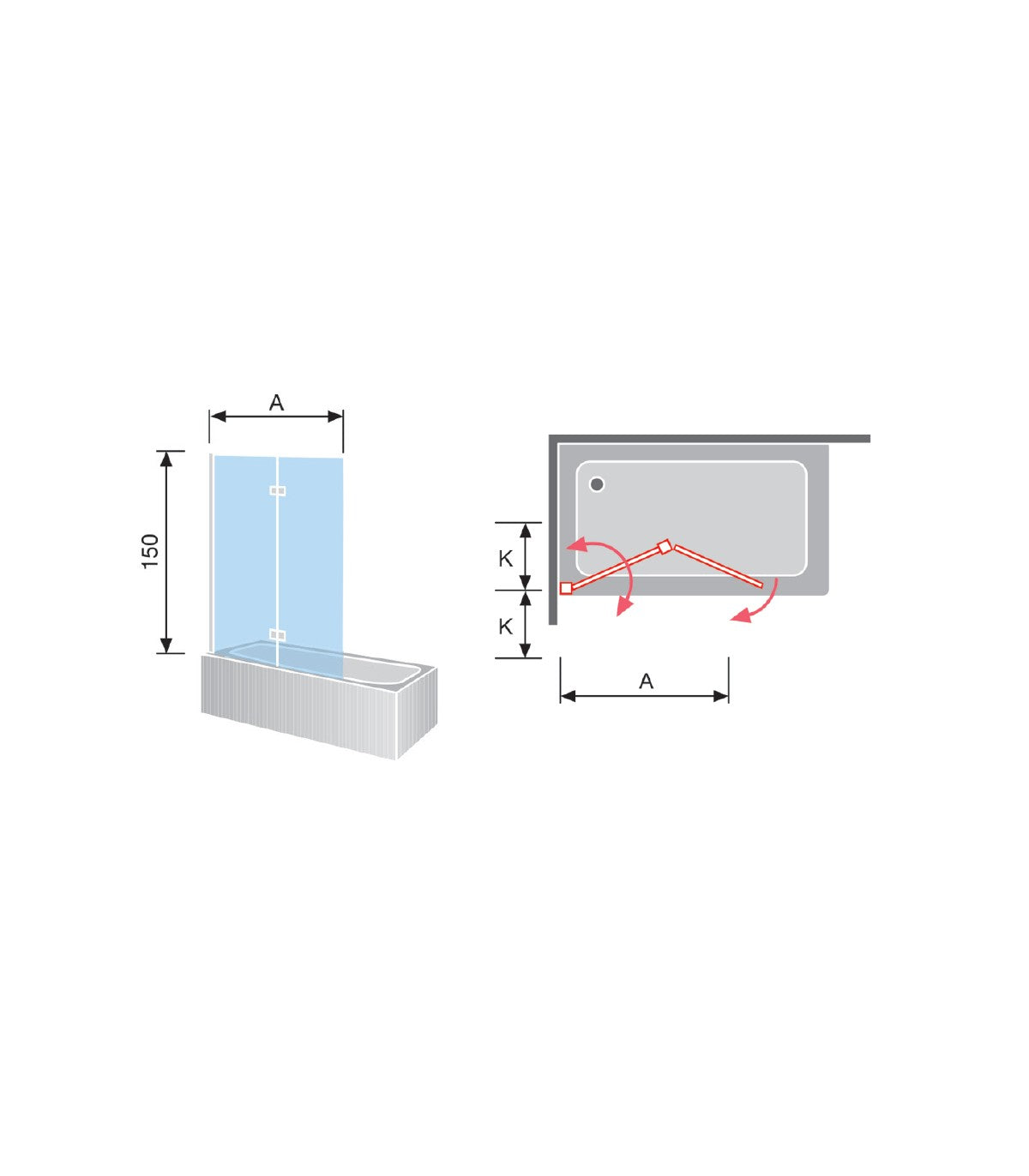 Mampara de Bañera 300 TR573 de Kassandra. Dos Hojas Plegables de 90 cm