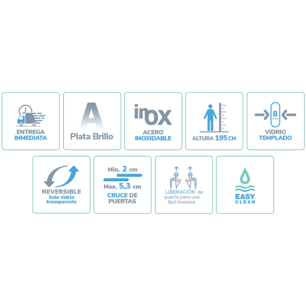 Mampara de Ducha Angular LIBERTY LI102-LI103 en Acero INOX | Frontal con Corredera + Lateral Fijo | Rodamientos Vistos