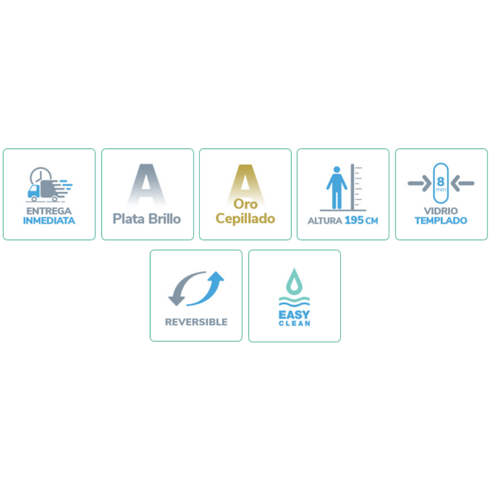 • Cristal templado de 8 mm: resistente, seguro y duradero.