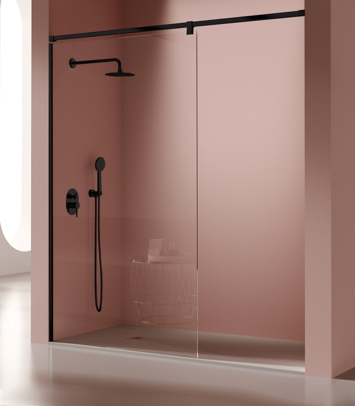 Compatible con platos de ducha modernos, aportando amplitud visual incluso en baños pequeños.
