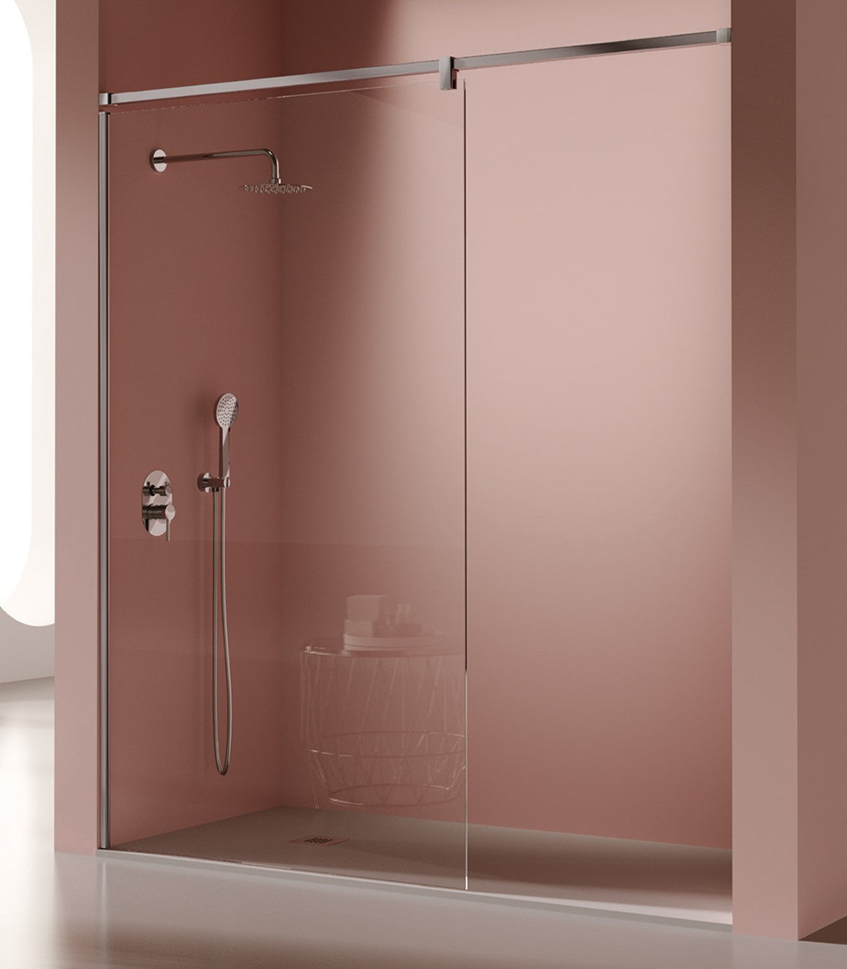 Disponible en vidrio transparente, pero también con opción de vidrio mateado o decorado Clio para mayor privacidad y un toque exclusivo.