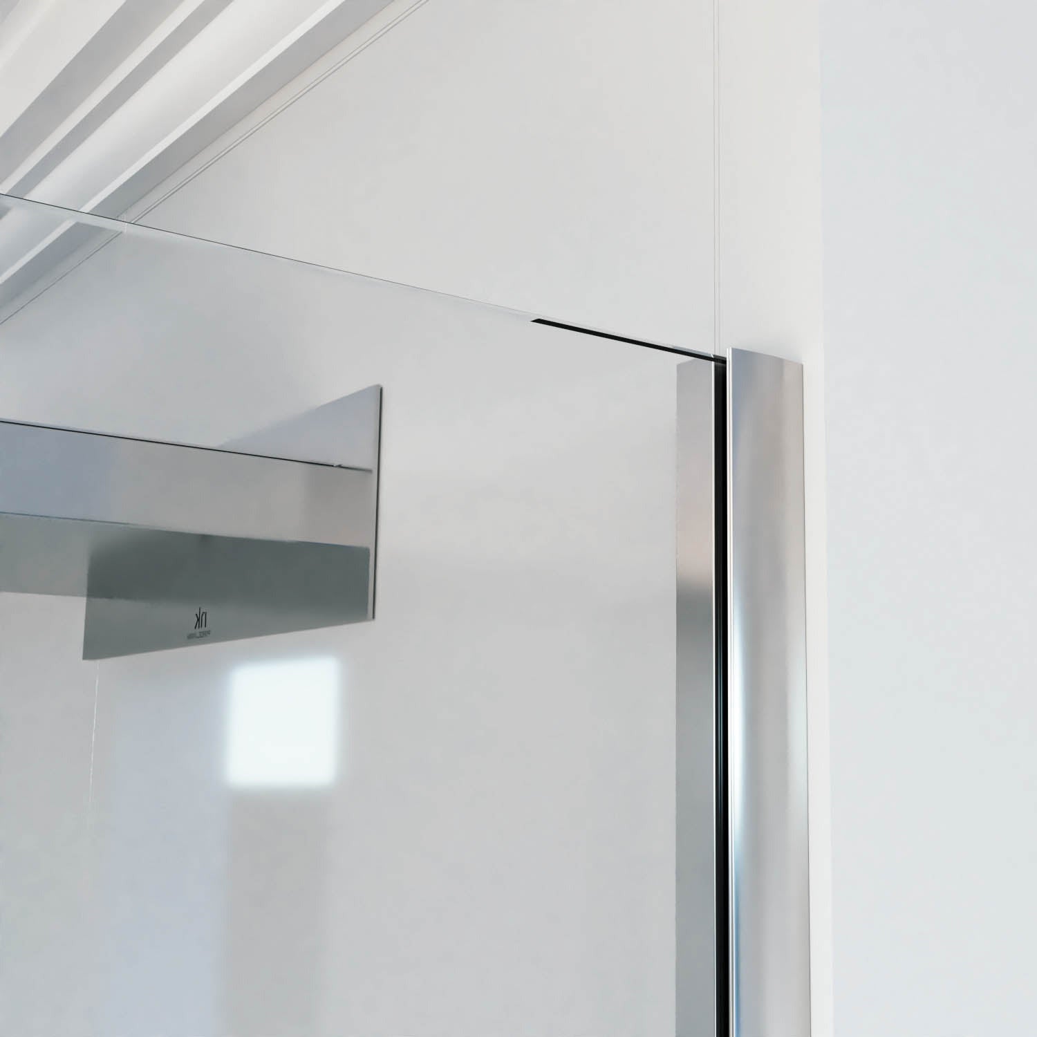 Diseñada con vidrio templado de 6 mm y tratamiento antical de serie, la mampara TELLA garantiza seguridad, durabilidad y fácil limpieza. Su altura de 200 cm aporta una sensación de amplitud visual, mientras que su elegante perfilería de aluminio anodizado en cromo alto brillo realza el diseño del baño con un toque sofisticado.