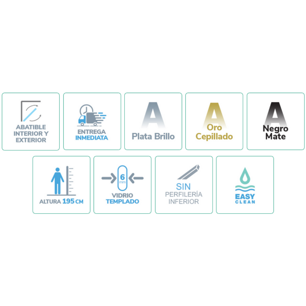 • Seguridad Y Calidad Duradera: Fabricada con vidrio templado de seguridad de 6 mm, reversible y con una altura generosa de 195 cm para contener salpicaduras. Perfilería de aluminio anodizado en Plata Brillante, Negro Mate o Dorado.
