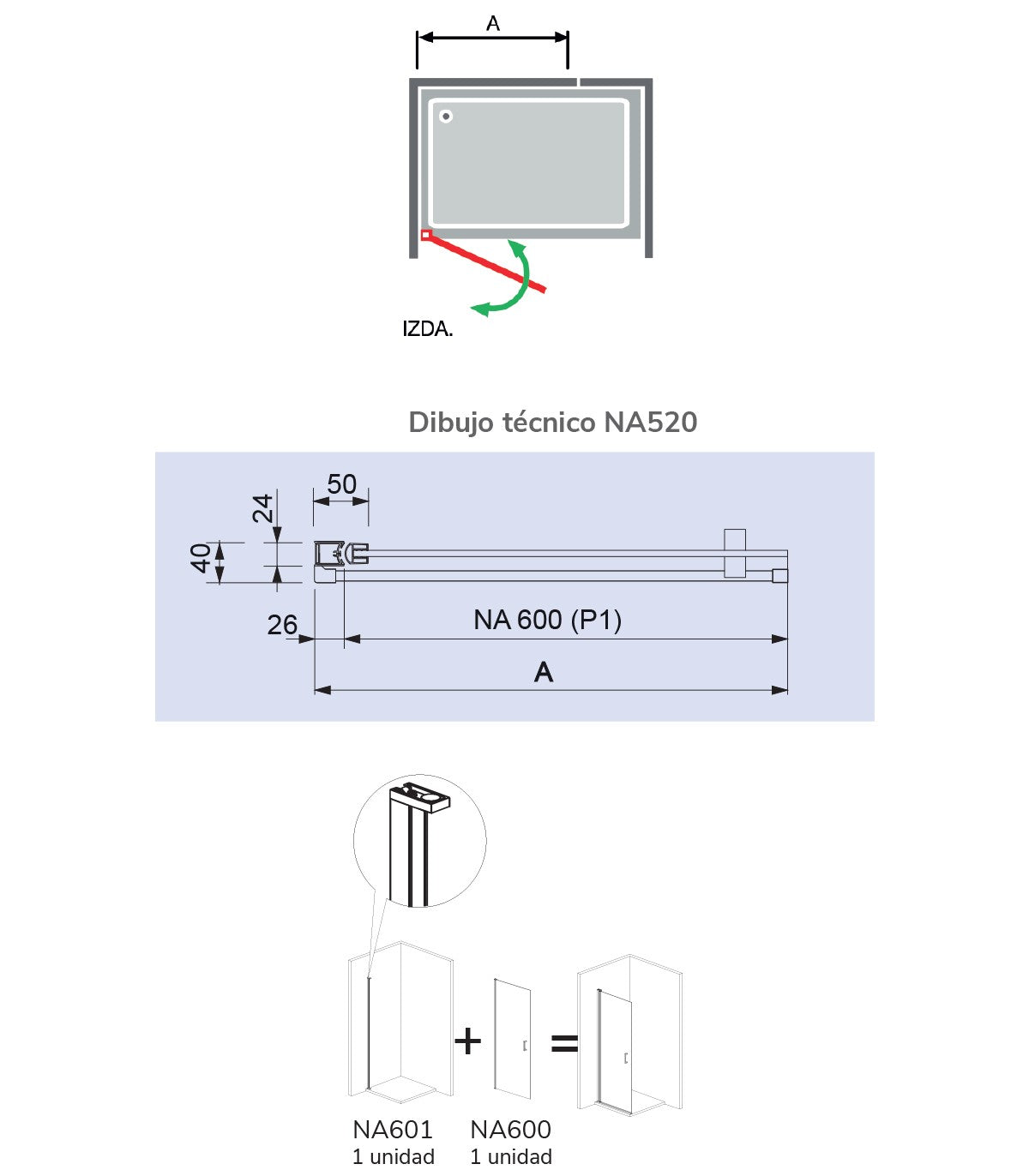 Mampara de Ducha NARDI NA520 de Kassandra. Puerta Abatible Sin Perfil de Cierre