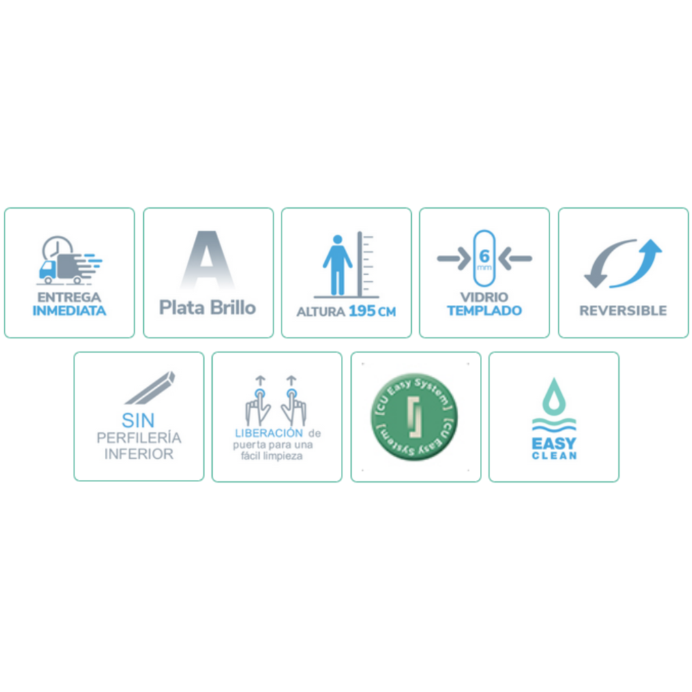 La solución perfecta para baños modernos que buscan funcionalidad, comodidad y estilo. Su diseño incorpora dos fijos y dos puertas correderas, ofreciendo un acceso amplio y ergonómico, ideal para espacios reducidos.