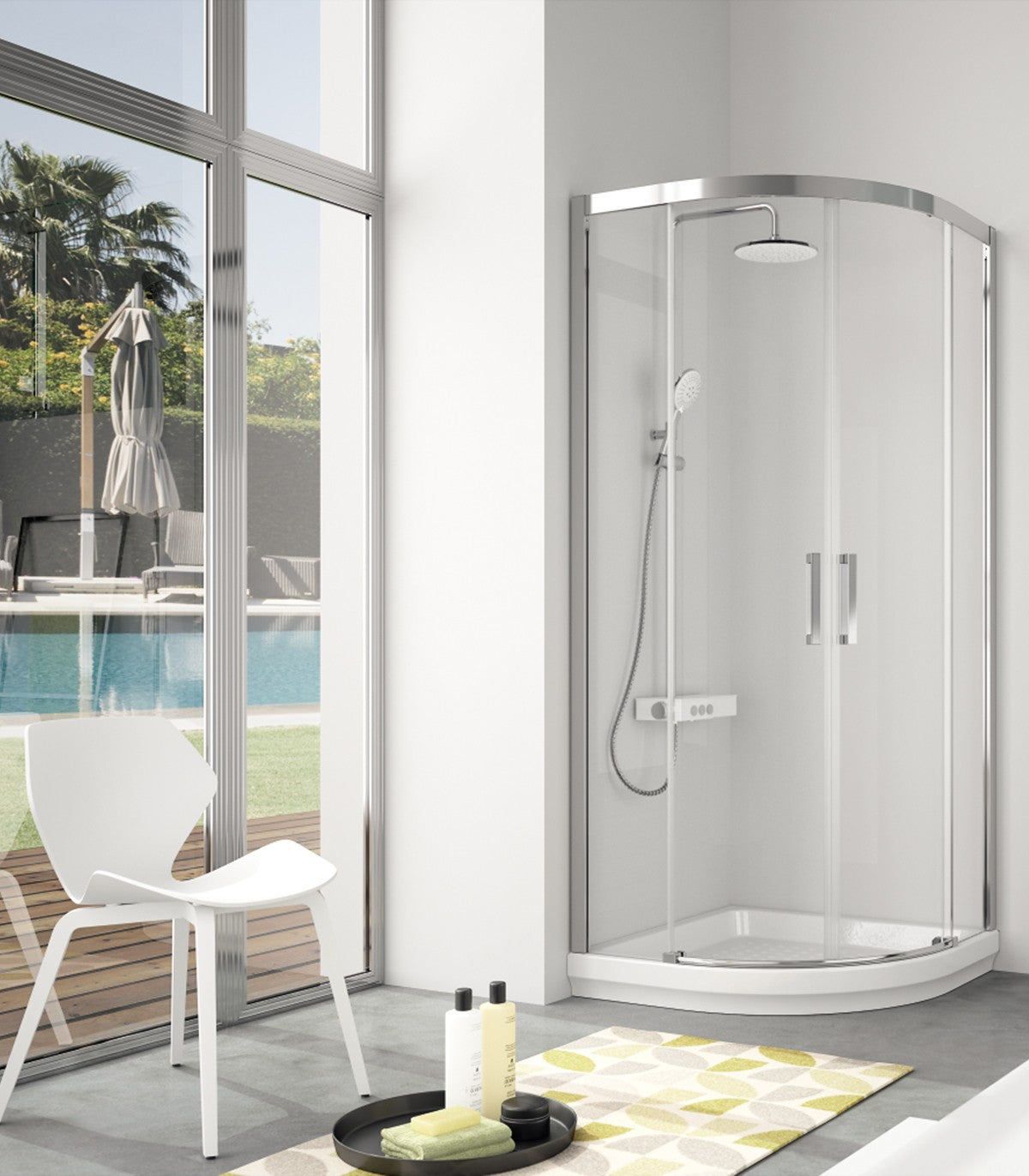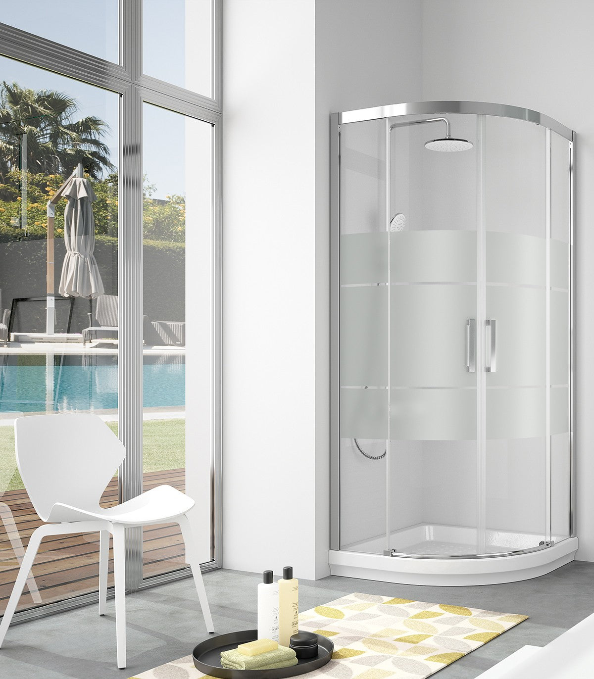 Dale a tu baño un aire sofisticado y práctico con la mampara semicircular Kassandra, una opción moderna, segura y duradera.