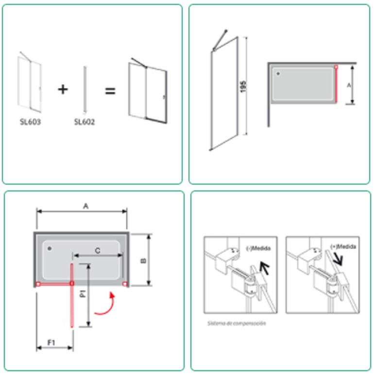 Mampara de Ducha SULA SL603+SL602 de Kassandra Frontal Fijo+Puerta Bisagras Pivotante