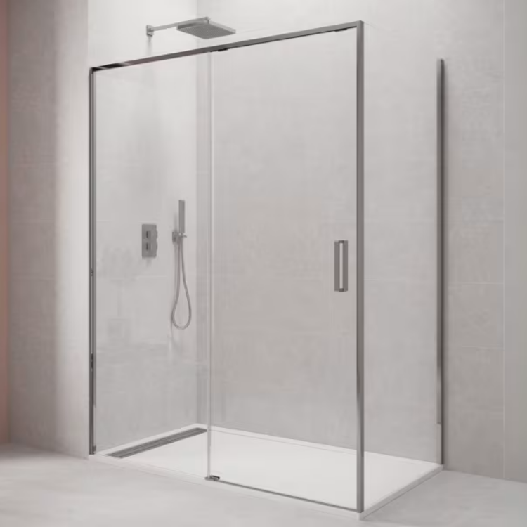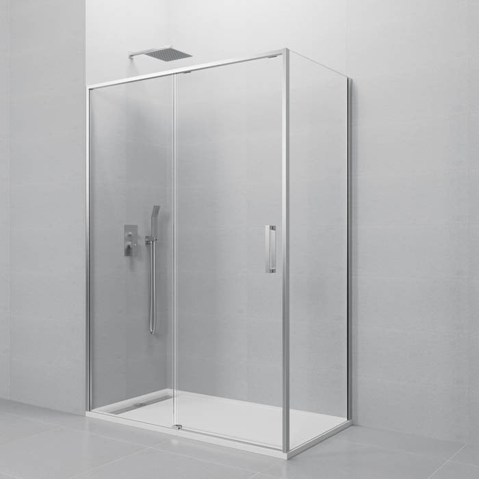 Su configuración de 1 hoja fija + 1 puerta corredera, con opción de añadir lateral fijo, ofrece versatilidad y comodidad en la instalación. Además, es reversible, por lo que puede montarse a izquierda o derecha según las necesidades del baño.
