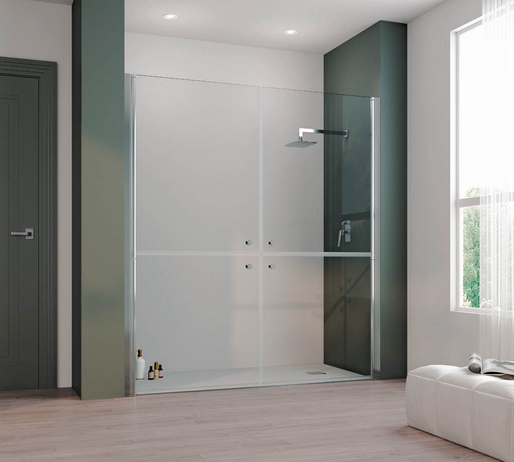 • Acceso optimizado: Doble puerta partida que despeja por completo la entrada a la ducha.