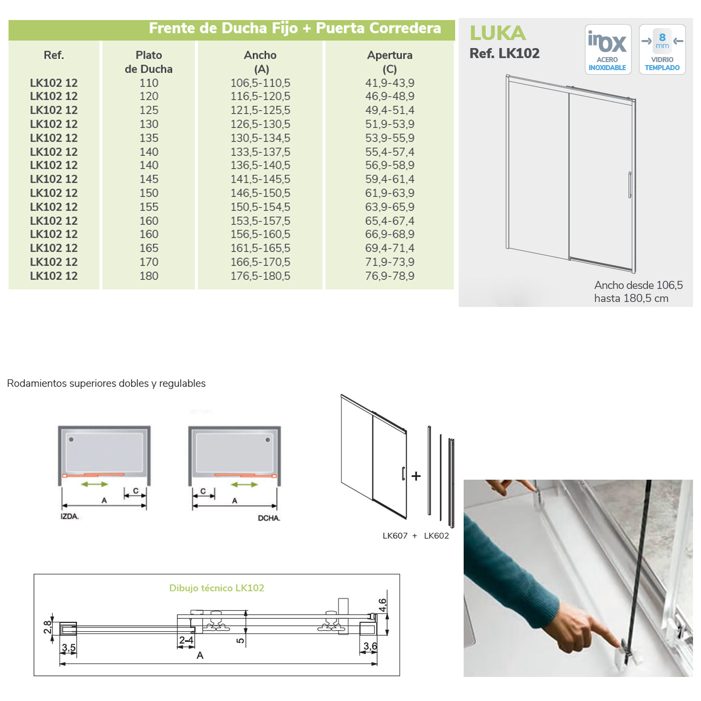• Composición: 1 fijo y 1 puerta corredera