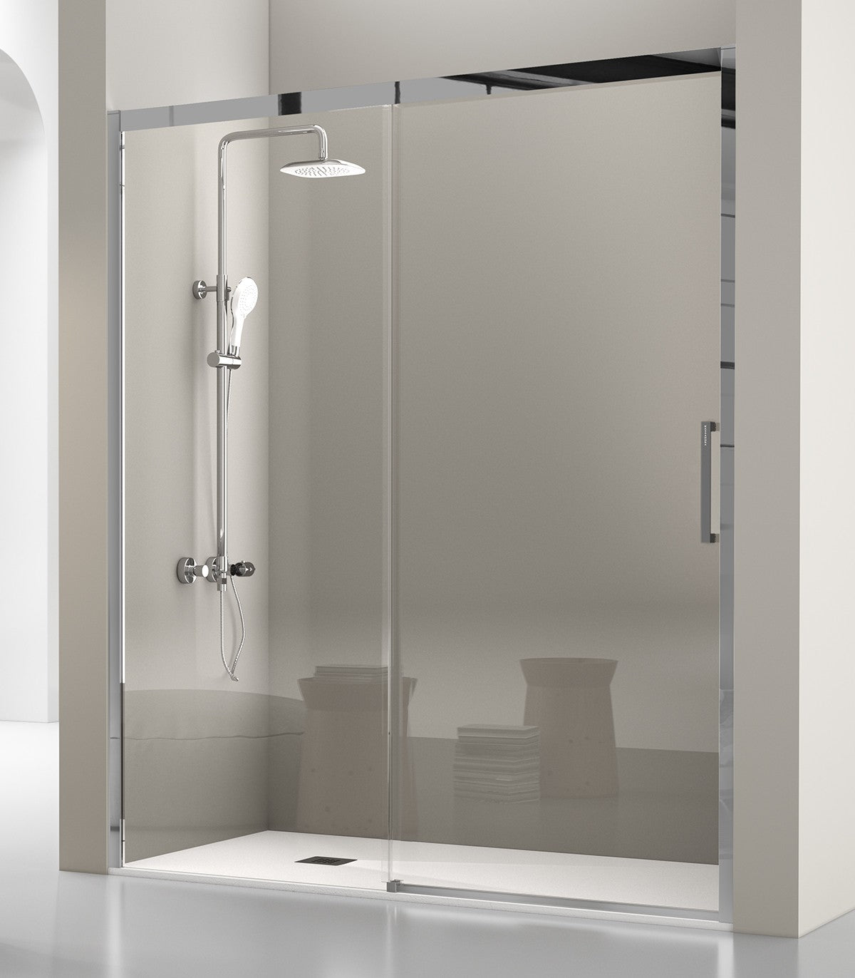 Mampara Ducha LUKA LK102 de Kassandra. Frontal 1 Fijo + 1 Puerta Corredera.