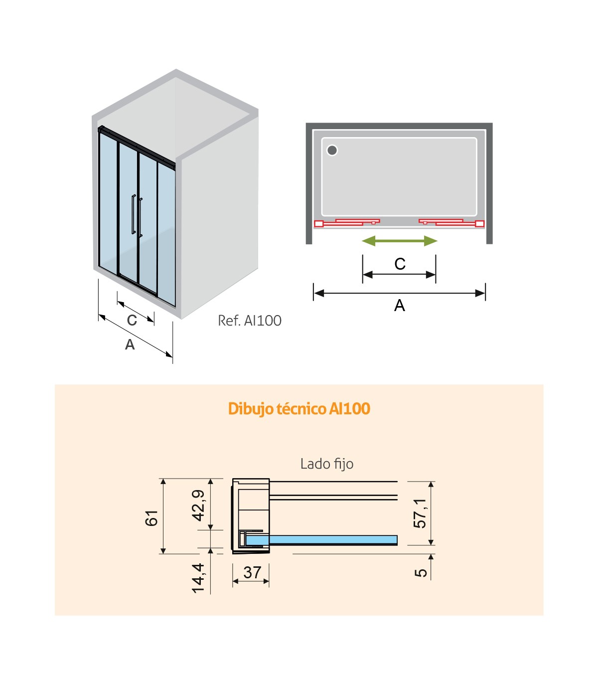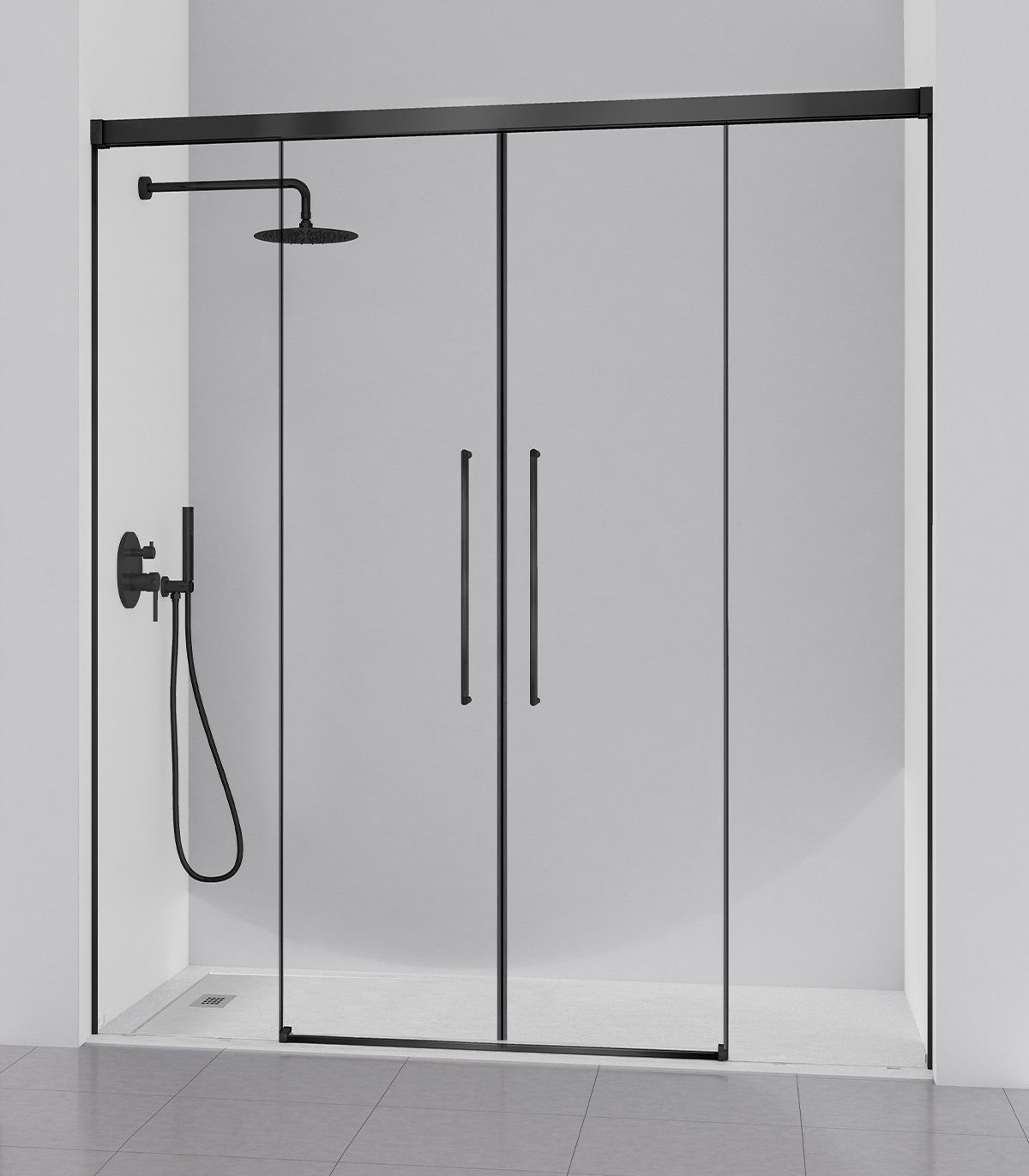 Mampara Ducha PAVÍA AI100 de Kassandra. Frontal 2 Fijos + 2 Puertas Correderas
